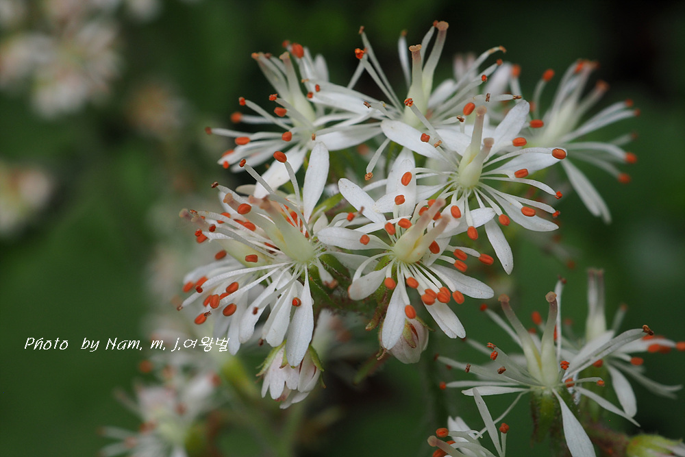 구실바위취가 주황색 성냥개비 같은 수술을 펼치기 시작하였다.