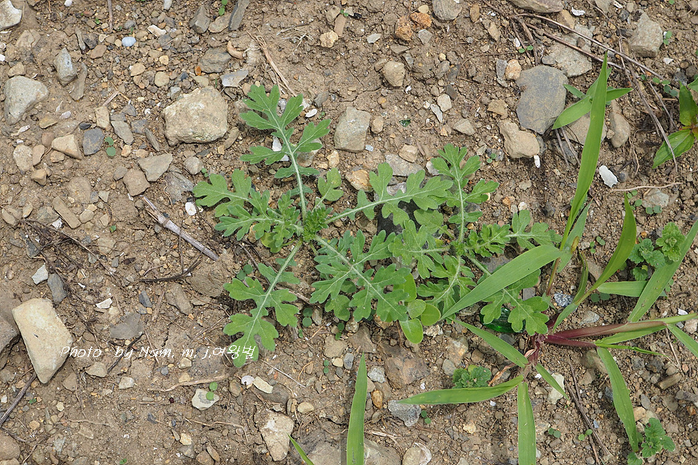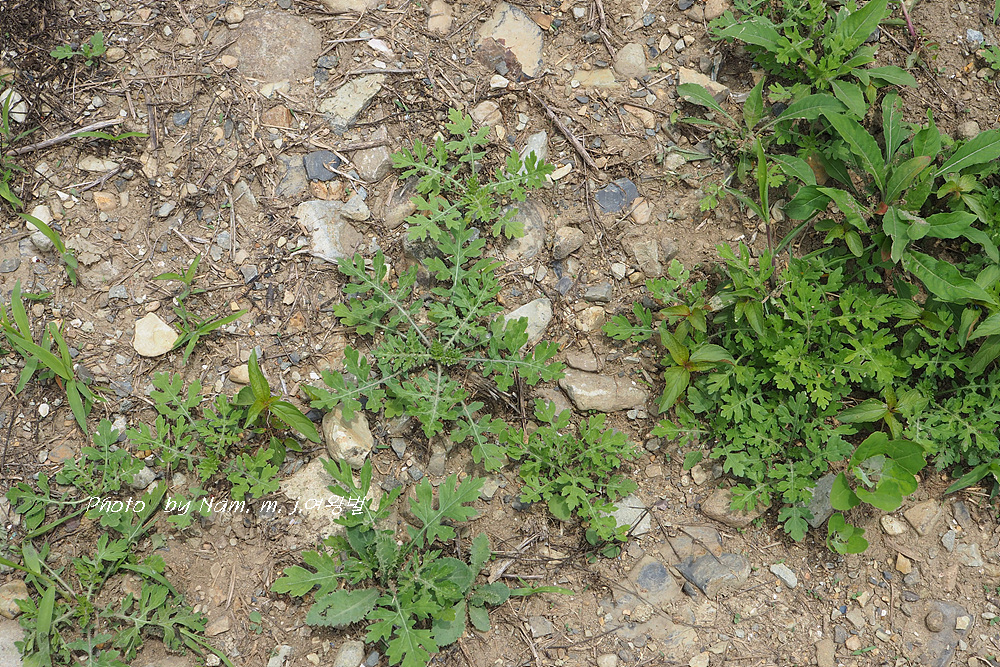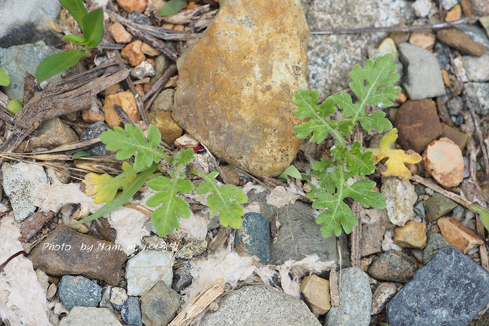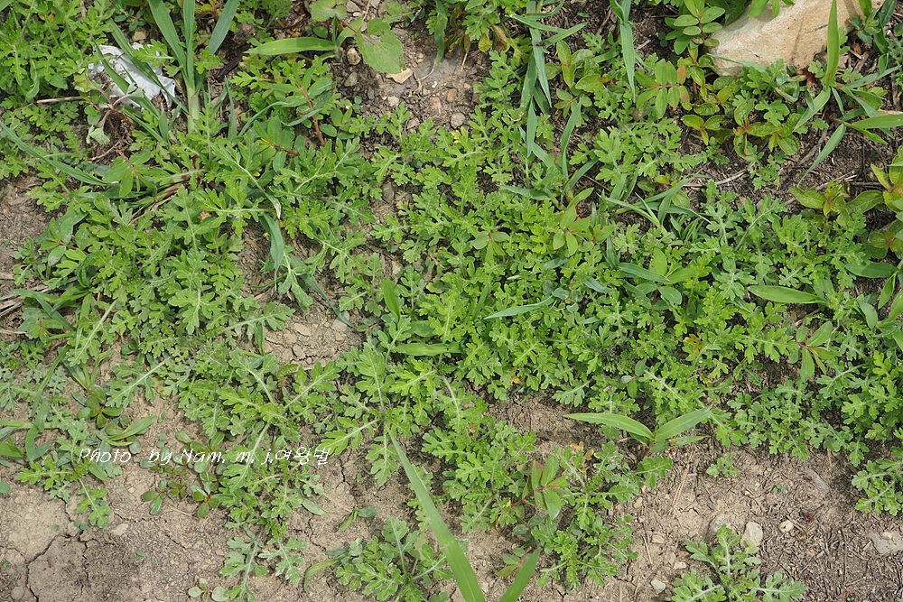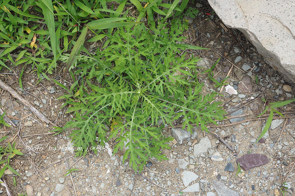 돼지풀 어린 싹과 비슷하다. 요 녀석은 돋아난지 얼마 안되는 아주 어린 녀석이다.