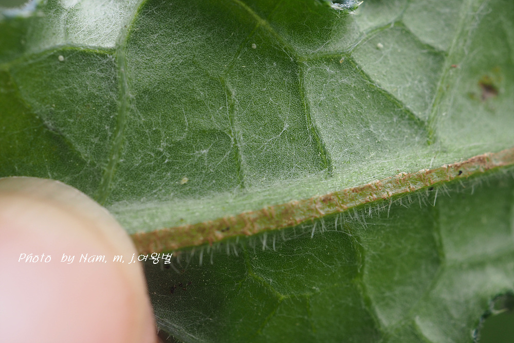 잎 뒷면에 거미줄 털이 적고 총포편 끝이 짧게 뾰족한 점이 특징이다.