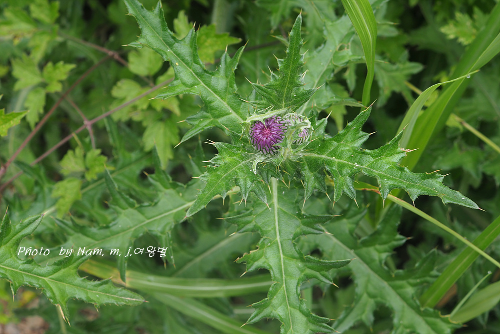 엉겅퀴에 비하여 잎이 4-5갈래로 깊게 갈라지고 톱니에 2~10mm 길이의 긴 가시가 있으며