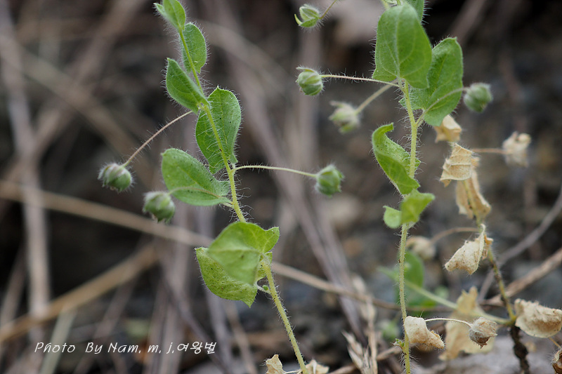 미니 메꽃같은 잎을 가진 줄기를 들어 올리다가 달려 있던 꽃과 열매를 보고