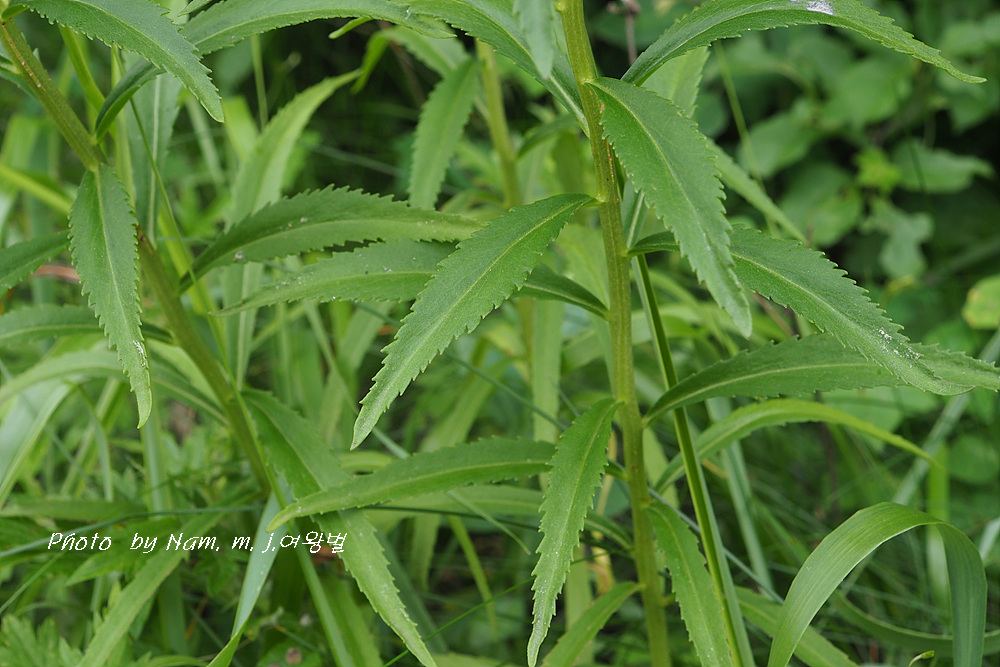 잎 가장자리에 불규칙하고 둔한 톱니가 있으며, 앞뒤에 모두 털이 없다