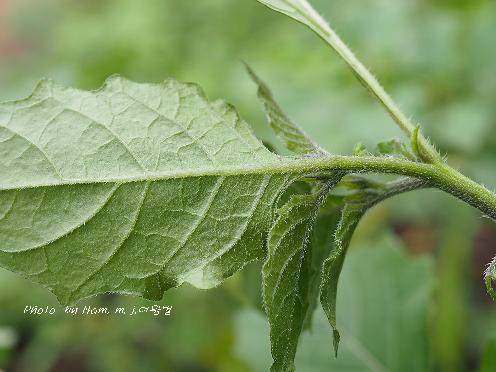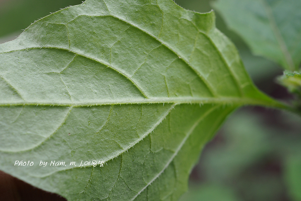 털까마중은 잎 양면, 줄기, 꽃받침에 샘털이 밀생한다.