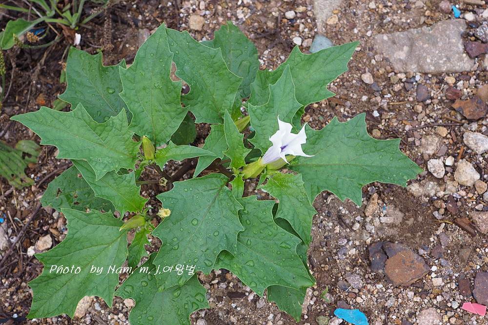 이 녀석은 열대 아메리카 원산으로 개항 이후 국내에서 약용식물로 재배하던 것이 야생화되어 전국에 분포한다 흰독말풀은 열대 아시아 원산의 귀화식물로 꽃은 흰색이며, 줄기와 잎자루는 자주색이 돌지 않으므로 구분된다.