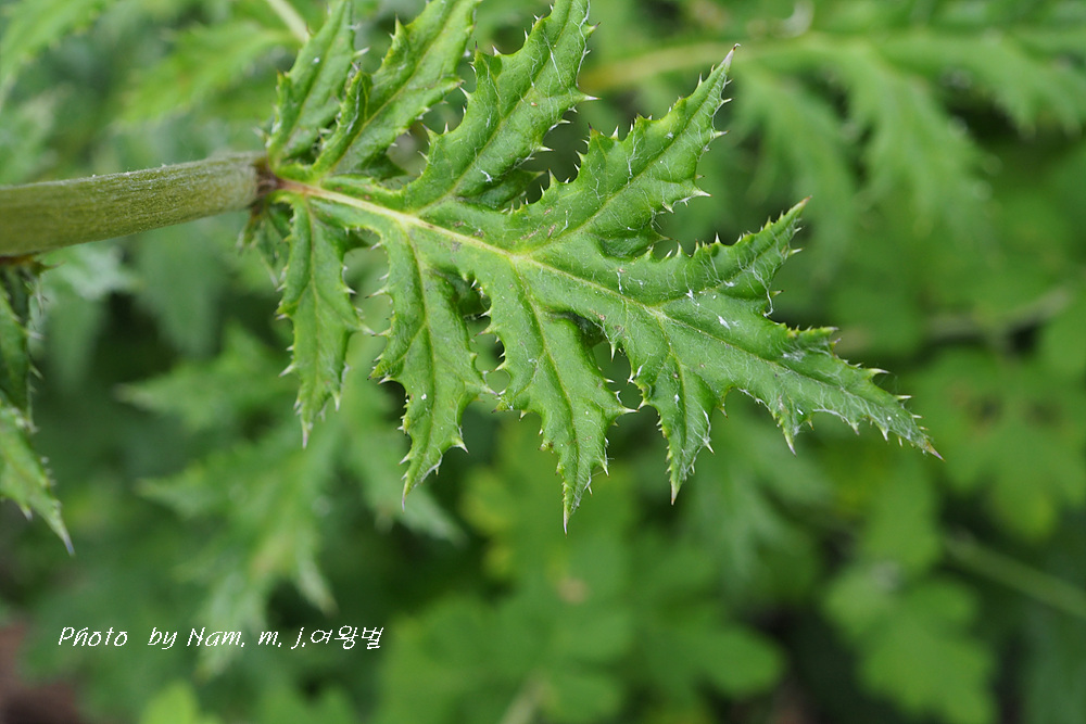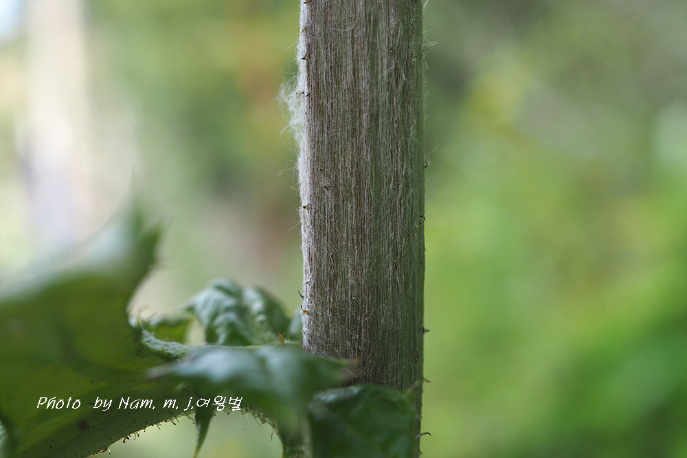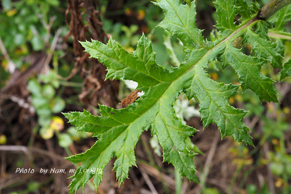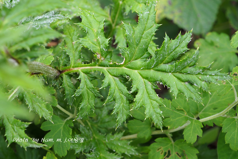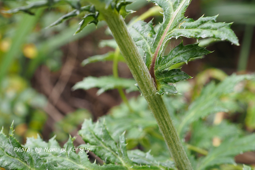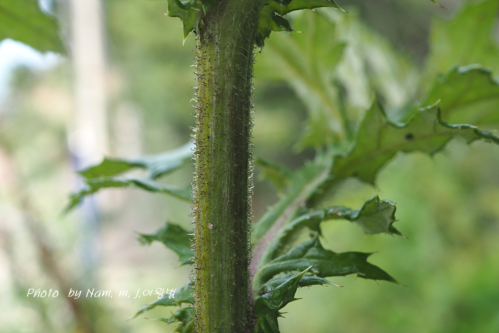절굿대에 비하여 잎이 두껍고 가시가 억세며 줄기에 부드러운 백색털이 많다.
