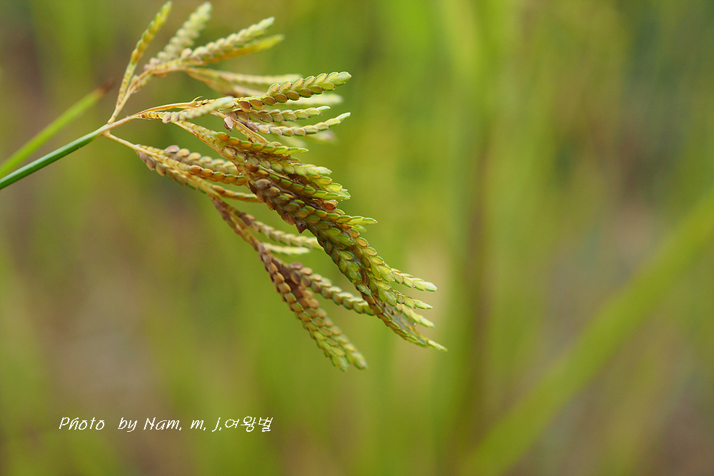 이삭이 전체가 약간 아래로 처지고, 인편 끝의 까락이 매우 짧고 젖혀지지 않는다.