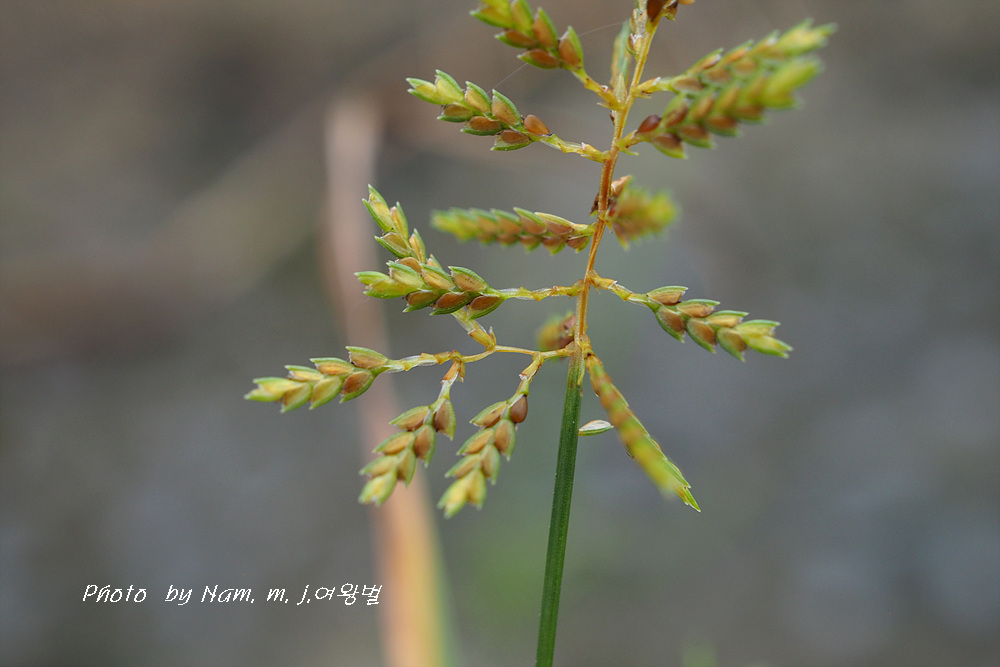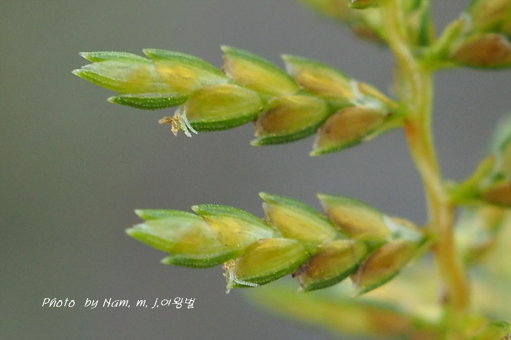 작은이삭은 선형, 길이 6~15mm, 폭 1.5mm 정도이다.
