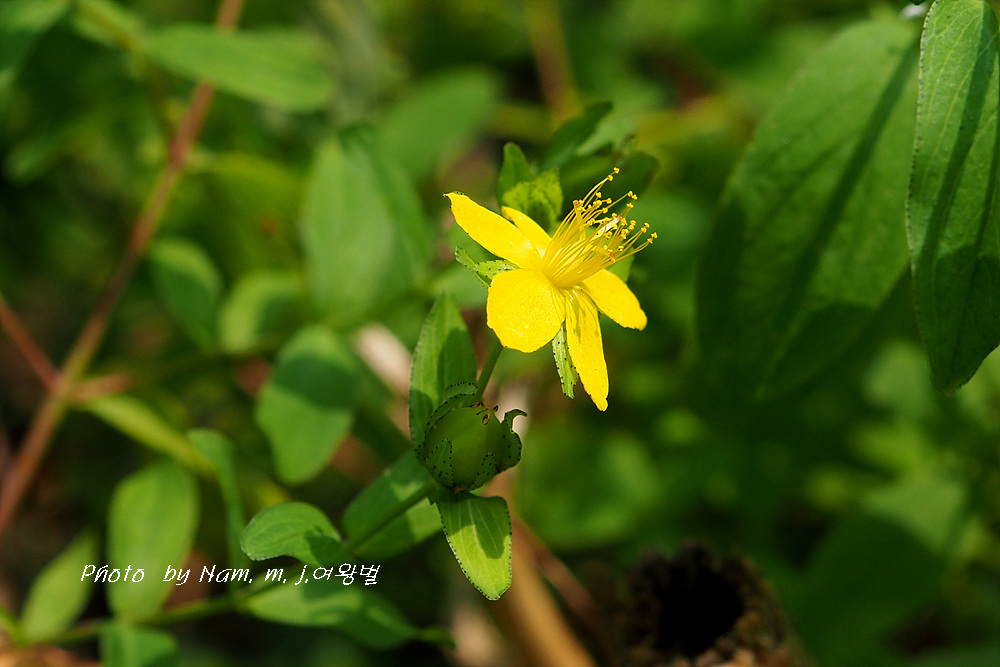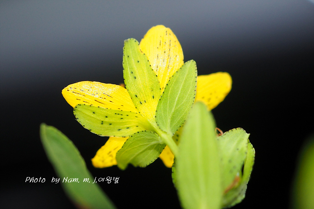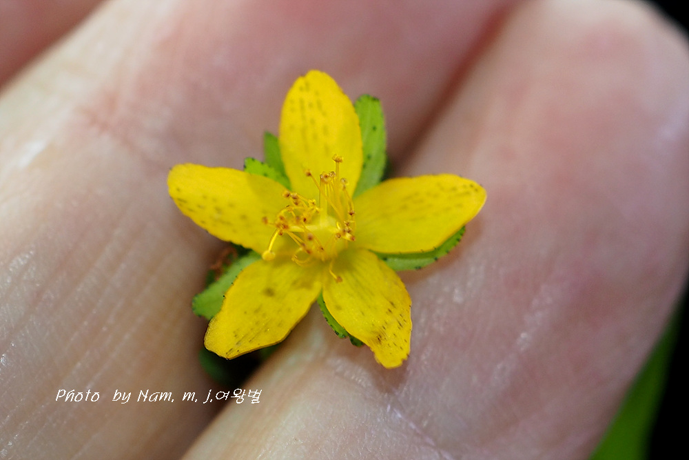 꽃잎은 긴 타원형 또는 주걱 모양으로 길이 7~10mm, 검은 점과 투명한 기름점이 있다.