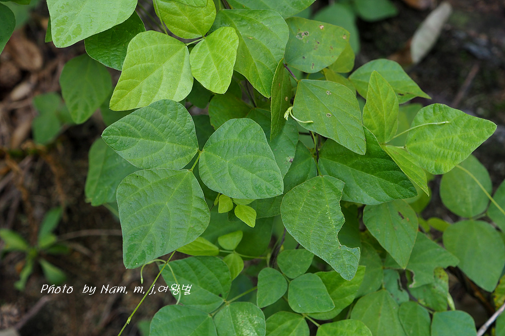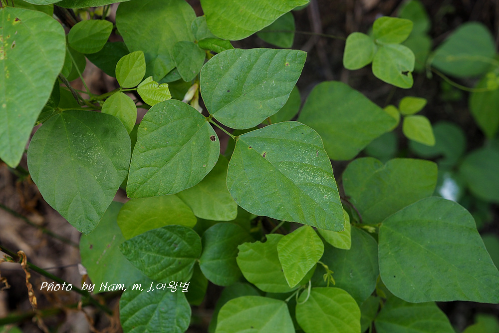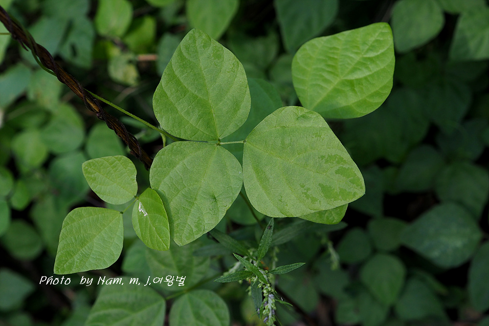 작은잎 3장으로 된 겹잎으로 잎자루가 길다. 가운데 작은잎은 난형으로 가장 크며 털이 있다.