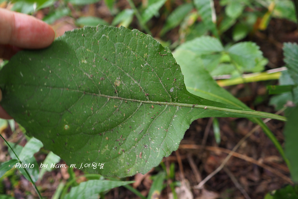 담배풀이 무리진 곳에서 이 녀석 어린싹이라고 담은 게 있긴 한데 아무래도 미심쩍어서 갸웃거리고 있다.