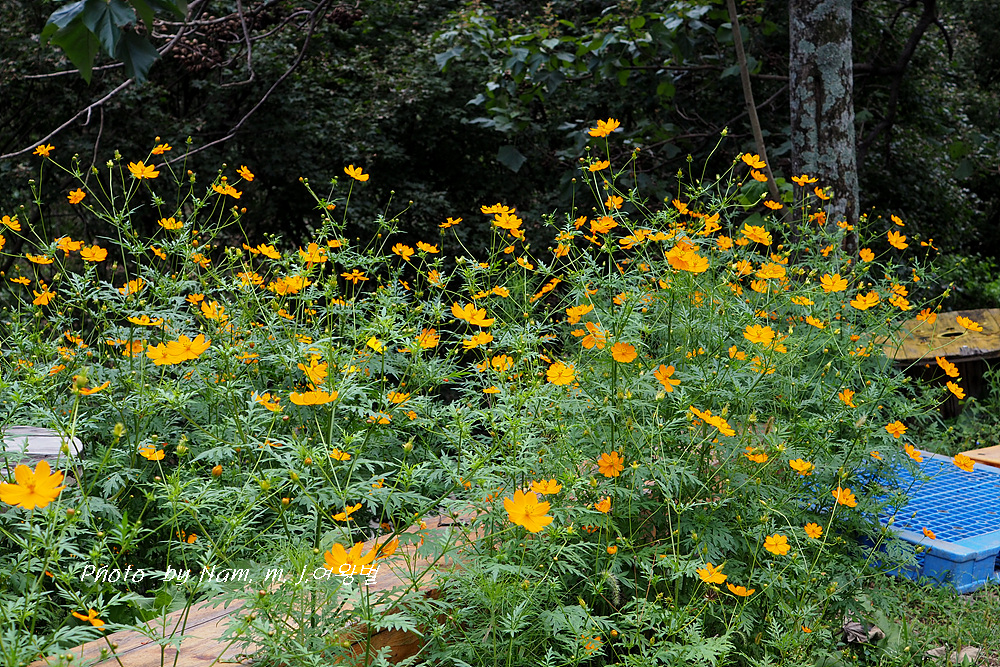 노랑코스모스로 가꾸어 놓은 펜션촌을 지나다가 그냥 지나치기 아쉬워서.