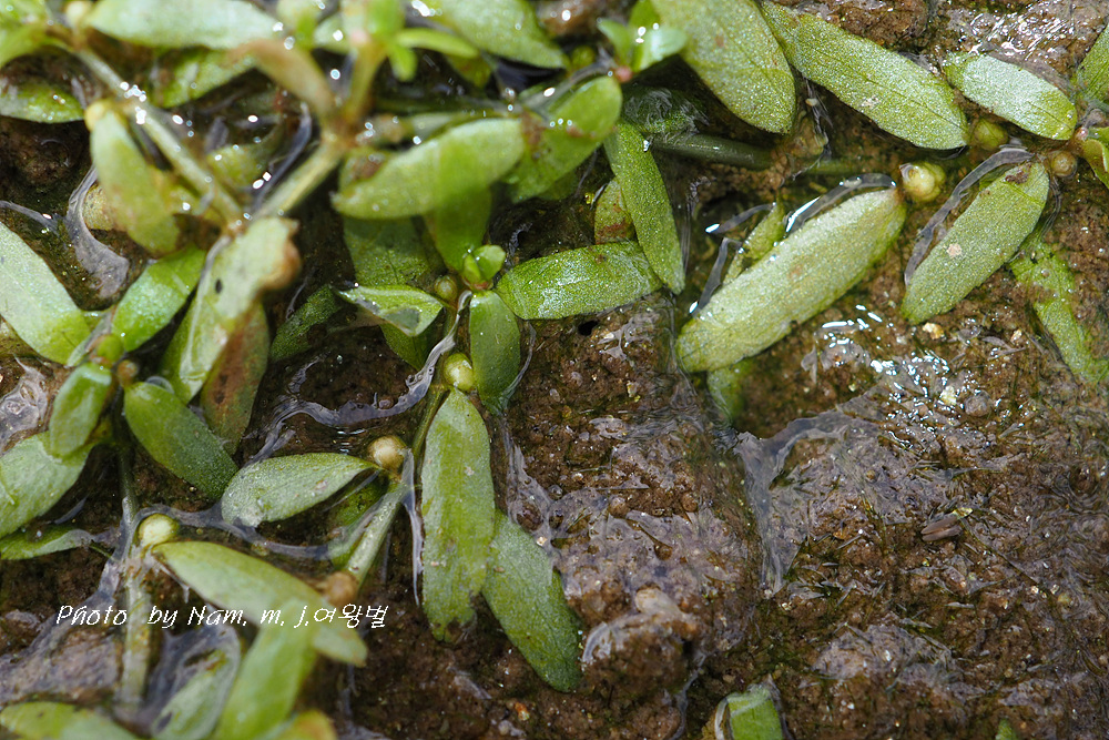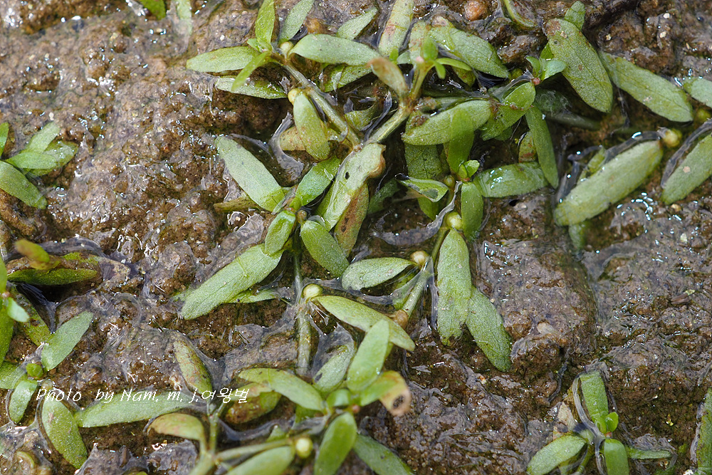 줄기를 옆으로 벋으면서 논바닥이나 얕은 물속 바닥에 붙어서 자라는 녀석이다