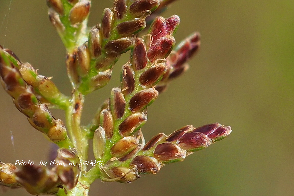 쇠방동사니 : 소수가 짙은 갈색을 띠고 소수 끝이 뭉툭하다