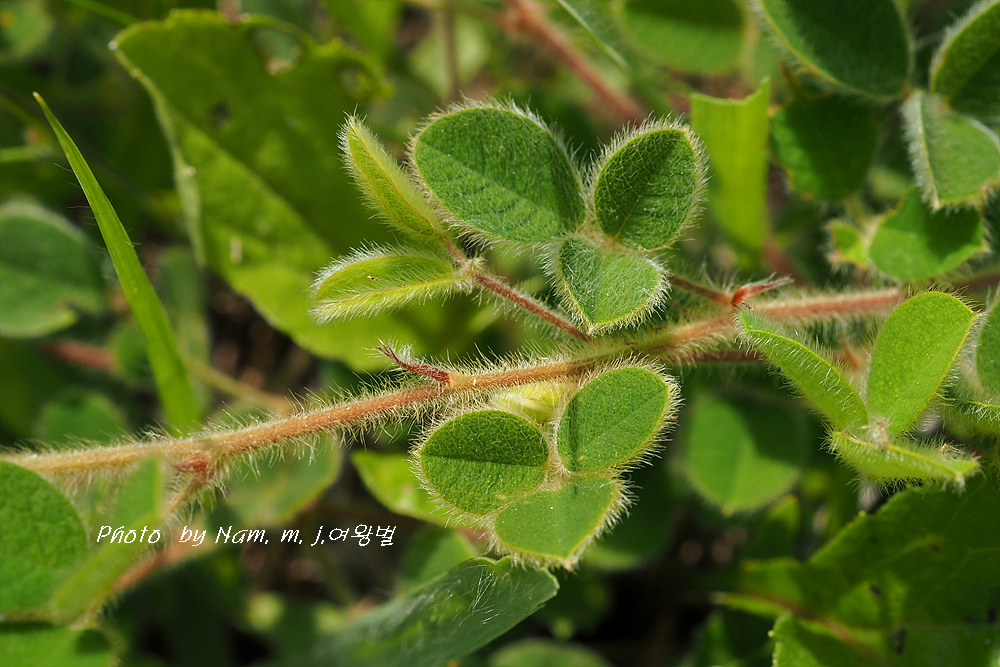 늘 봐오던 괭이싸리에 비하여 갈색의 긴털이 밀생하는 생소한 모습이다.