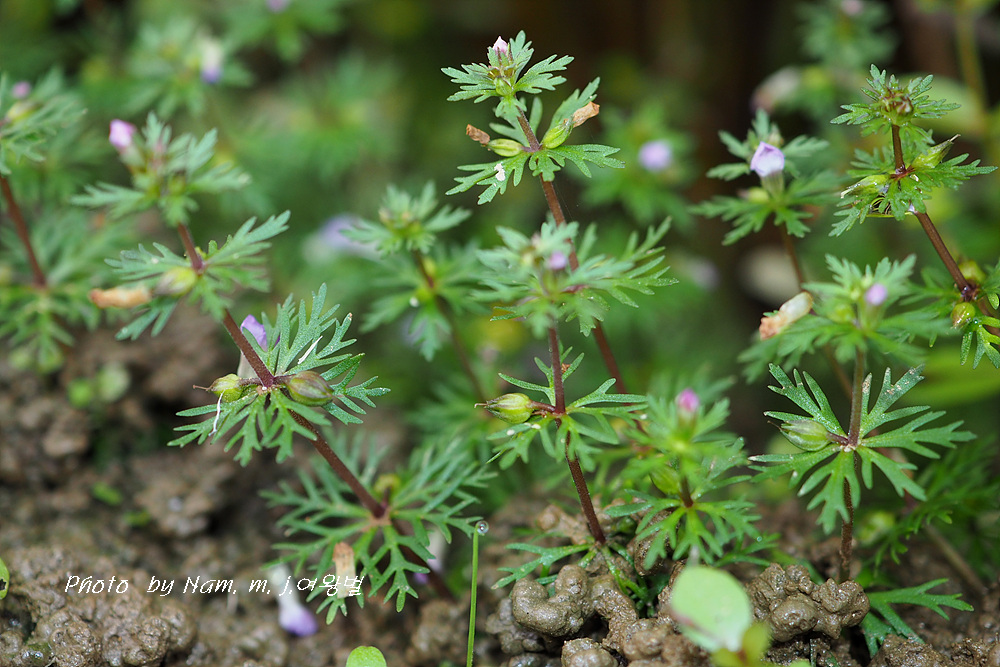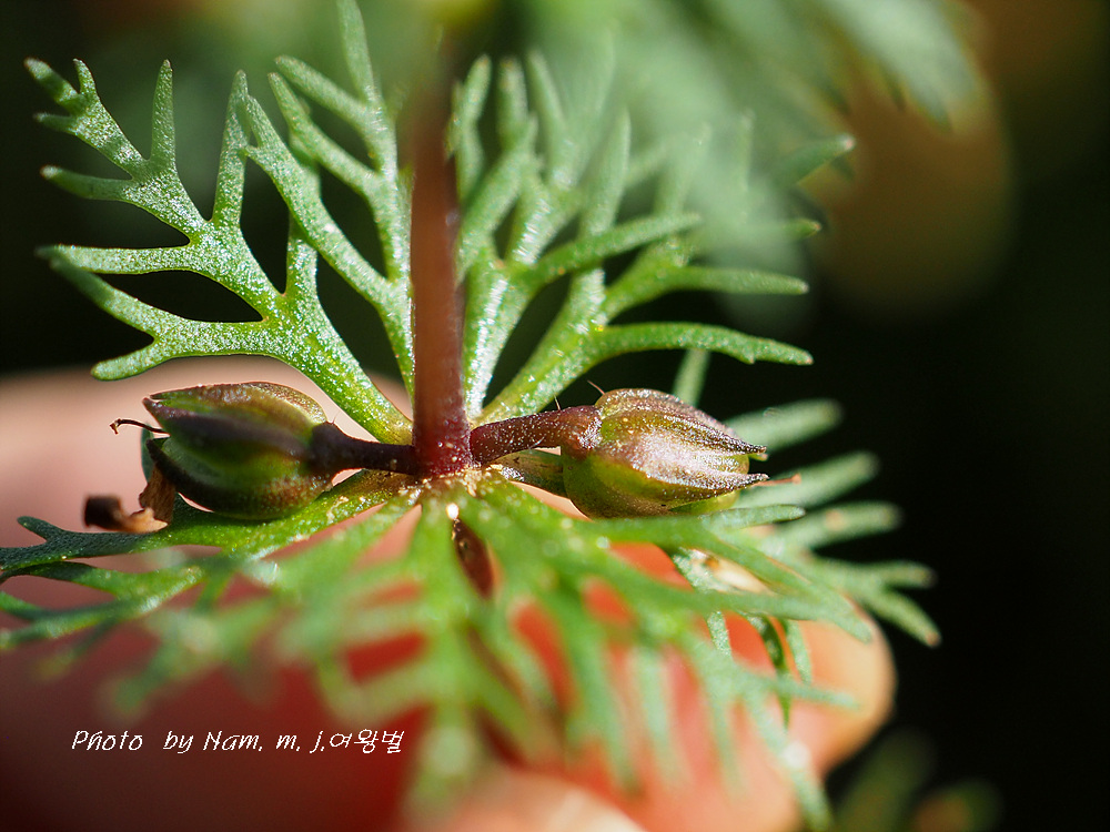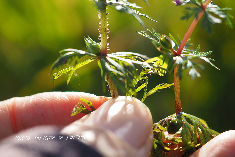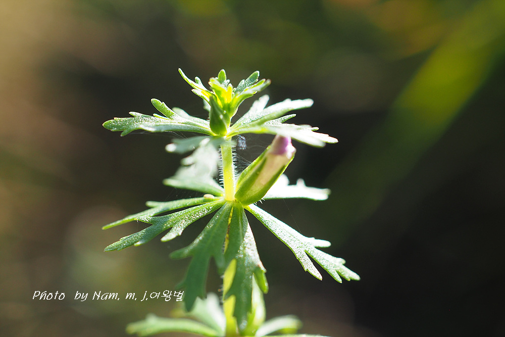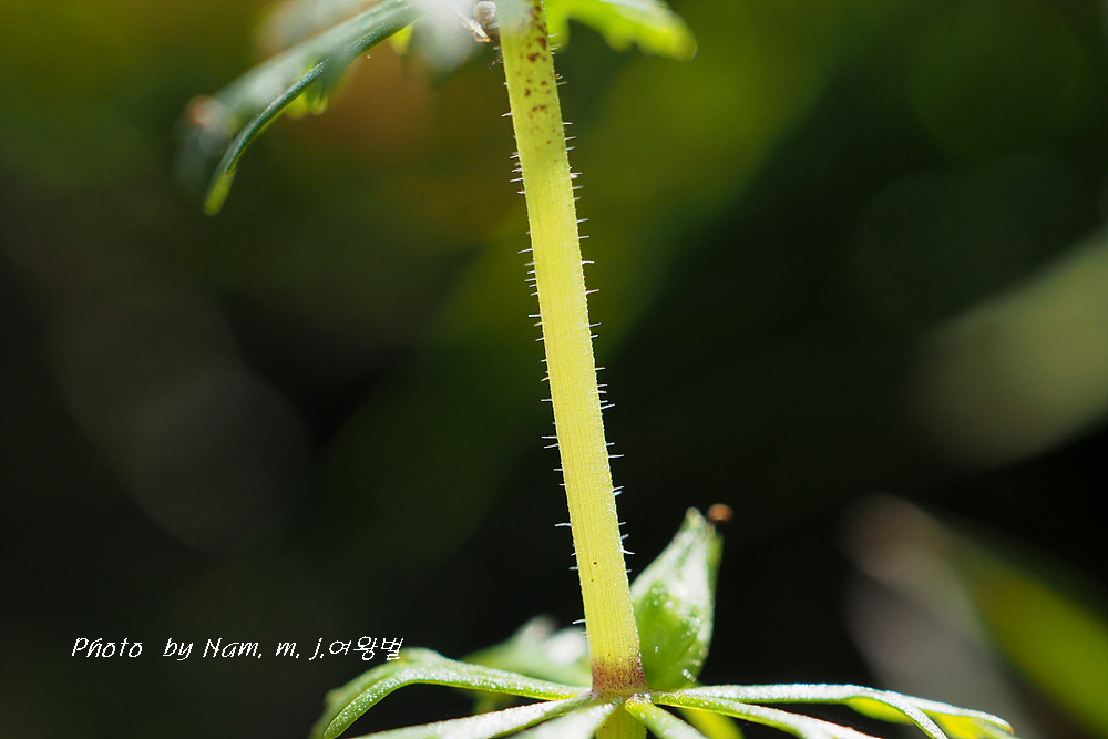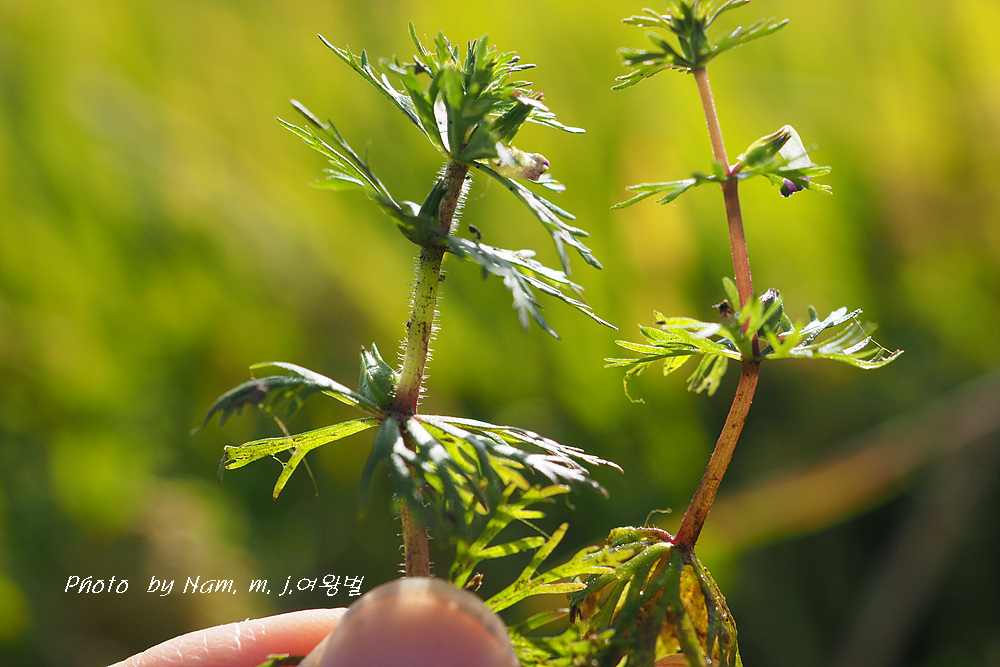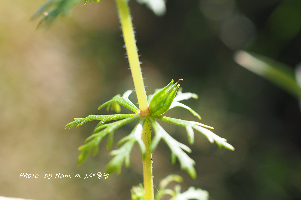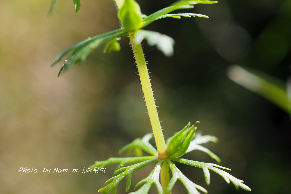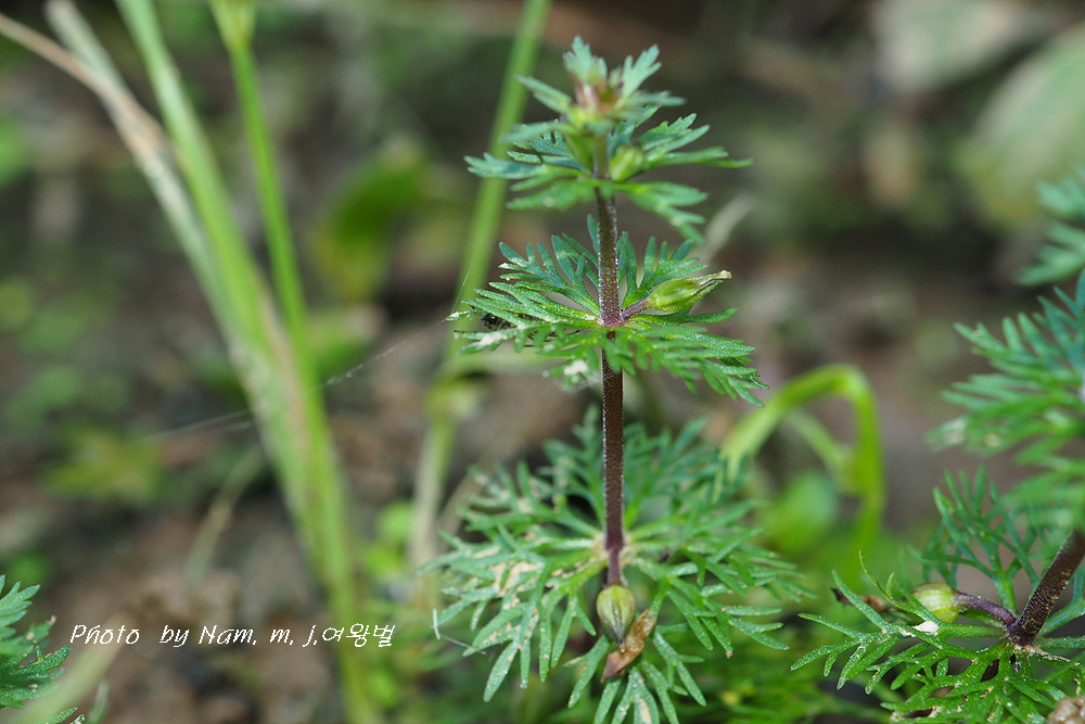 꽃자루가 민구와말처럼 길지 않고 줄기 위쪽 잎이 세열하고 돌려나기 잎이다.