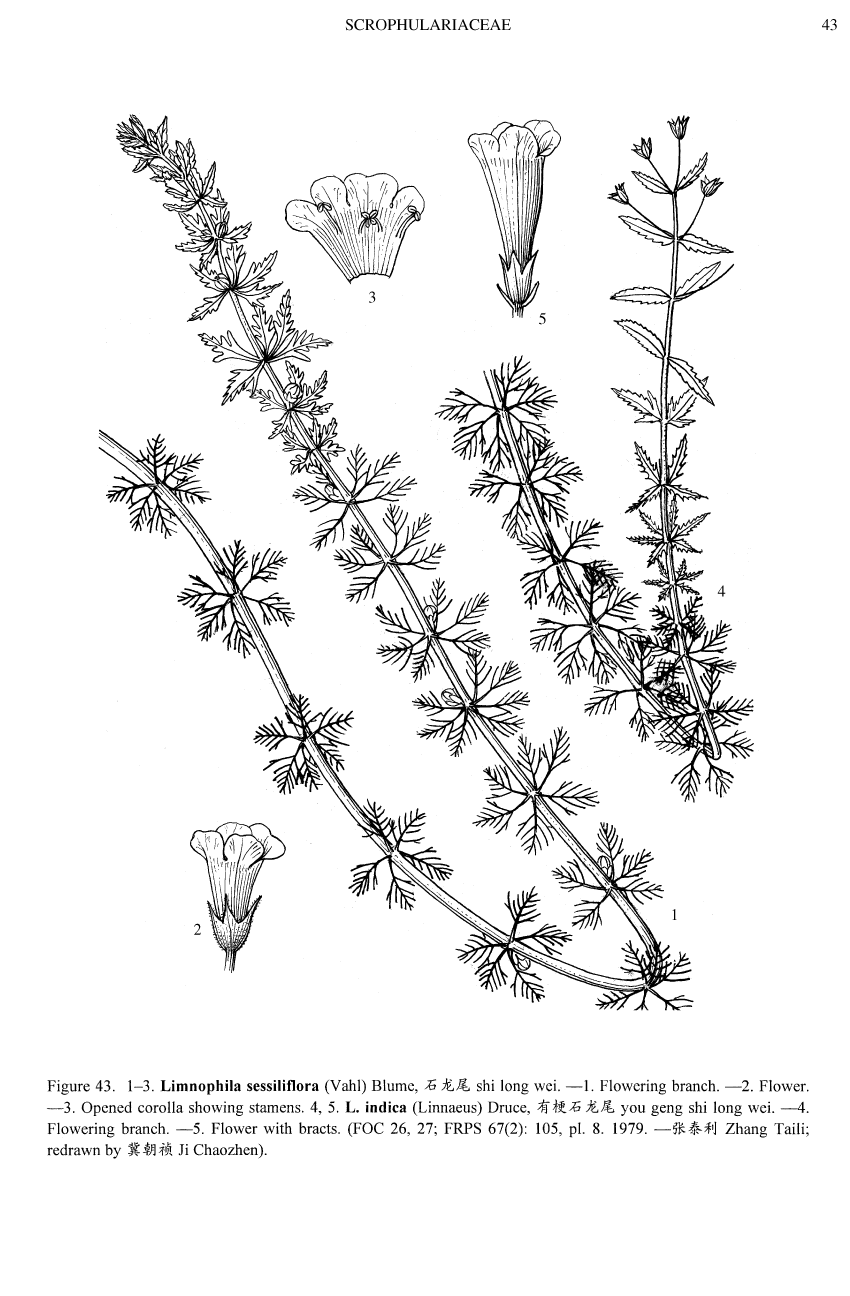2. 포엽 1.5-3.5 mm 화관 1-1.4 cm ................................. Limnophila indica 민구와말 1. 꽃자루는 없거나 드물게 1.5mm 2. 포엽은 없거나 드물게 1.5mm, 화관 1cm 이하 .................................. Limnophila sessiliflora 구와말 |