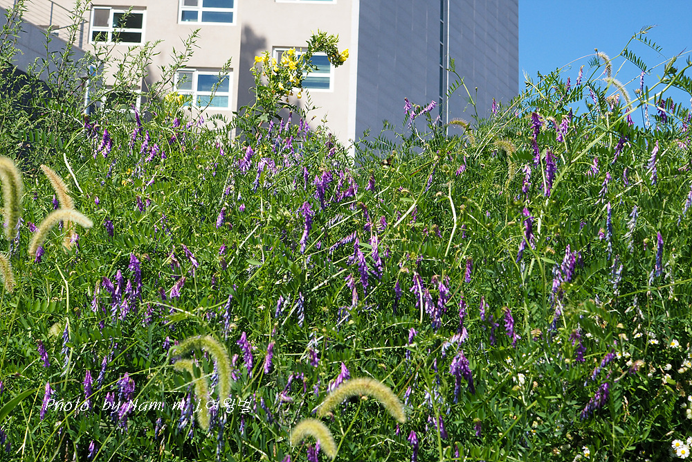 도청 앞 큰 건물 사이 공터에 각시갈퀴나물이 완전 덮고 있었다.