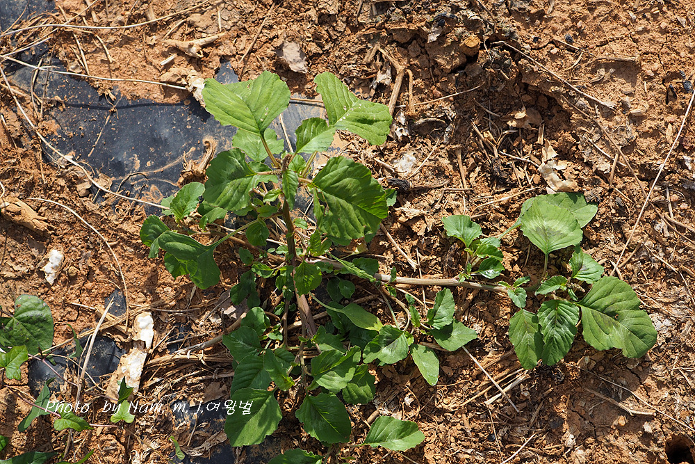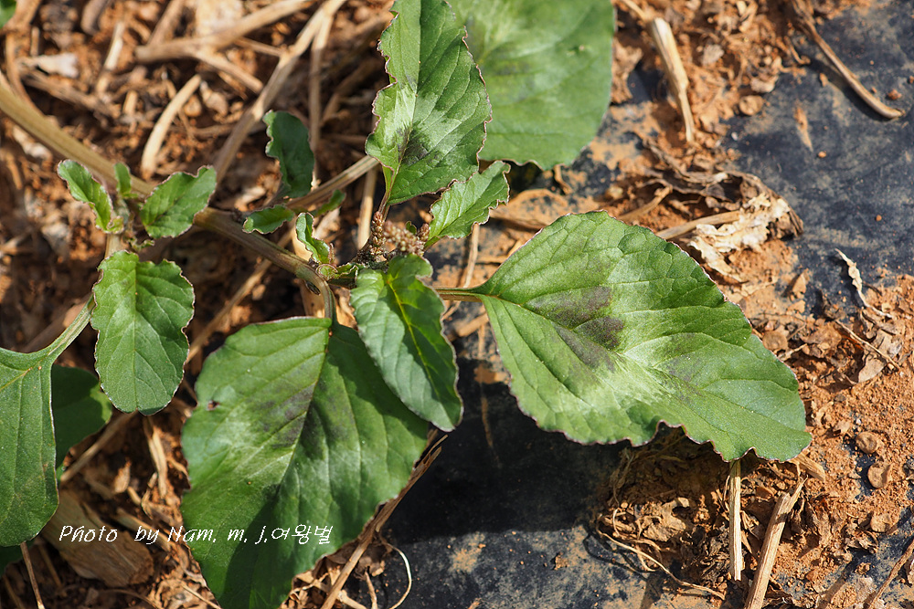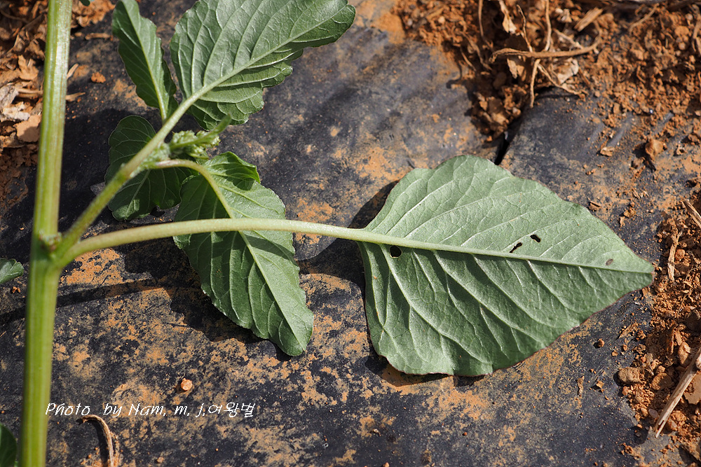 전초에 털이 거의 없고 잎이 마름모상 난형이며 양면에 털이 거의 없다