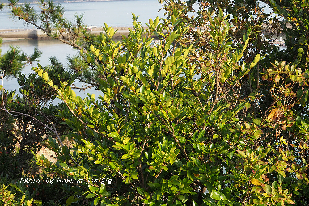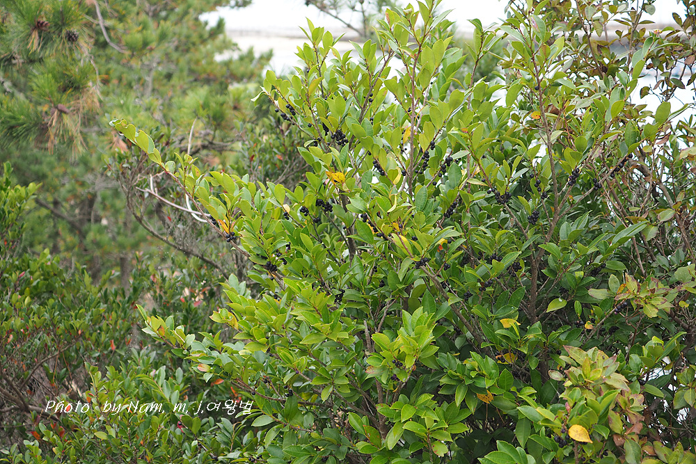바닷가 산기슭에서 자라는 상록성 떨기나무 또는 작은큰키나무로 높이는 1~3m 정도이다.