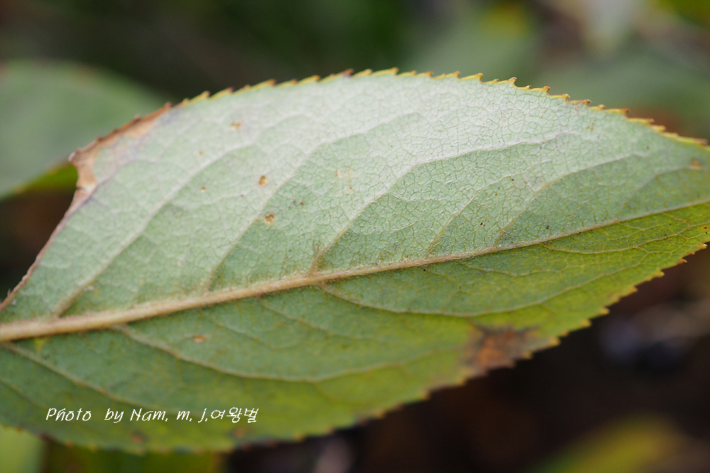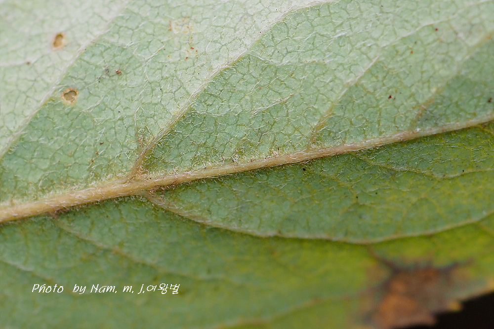 잎 양면에 털이 있으며, 특히 뒷면 맥 위에 털이 많다.