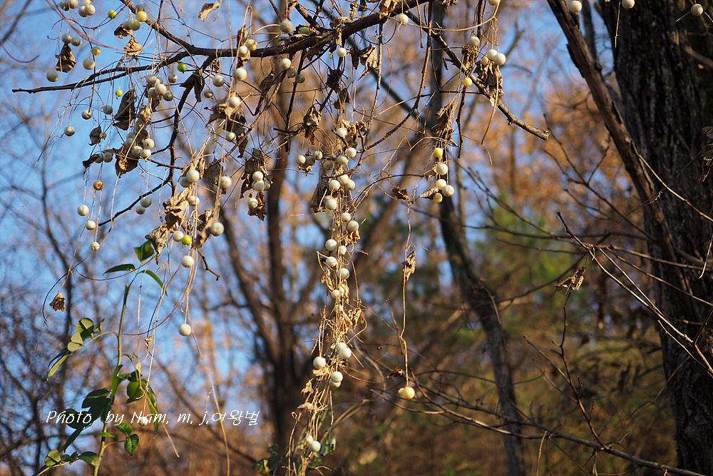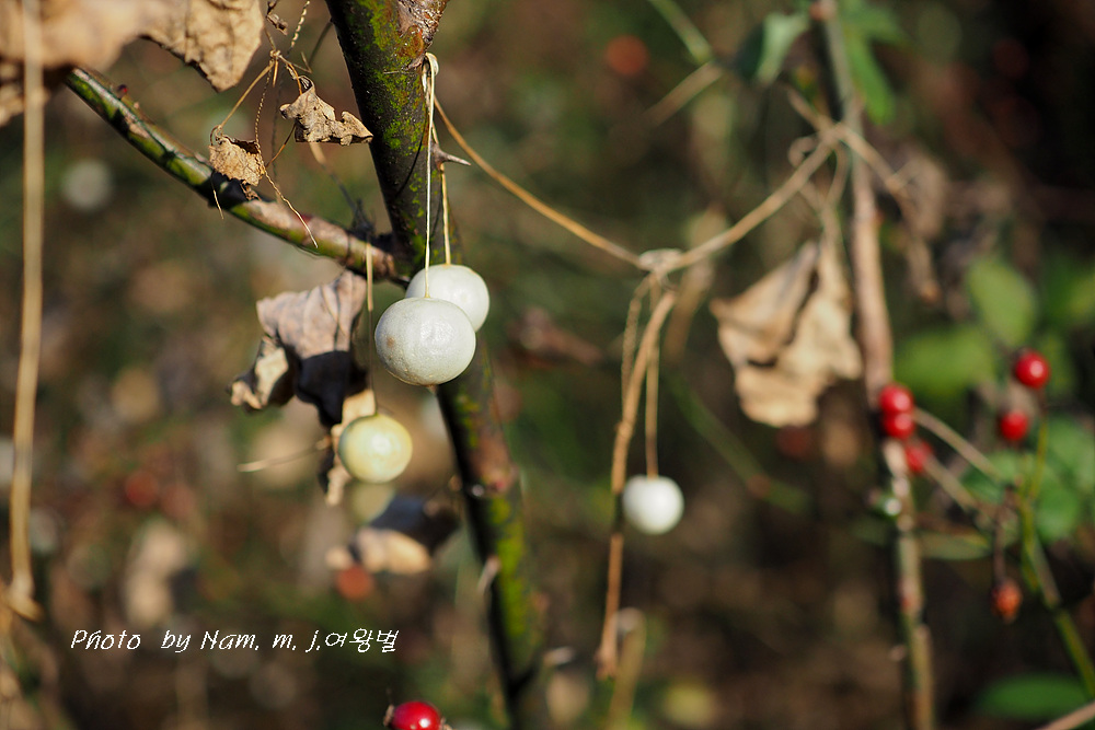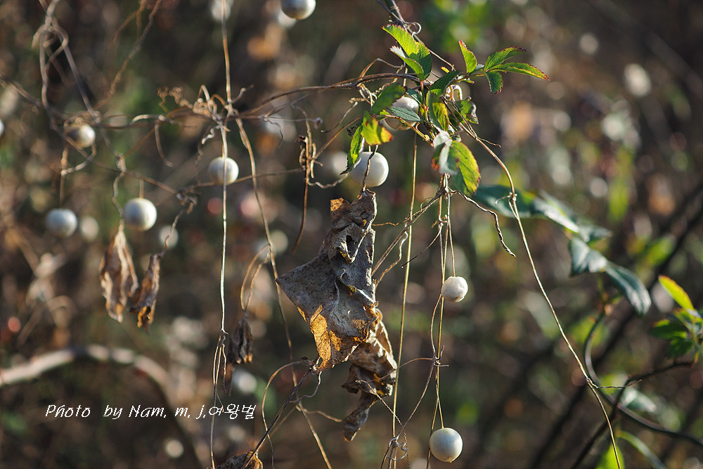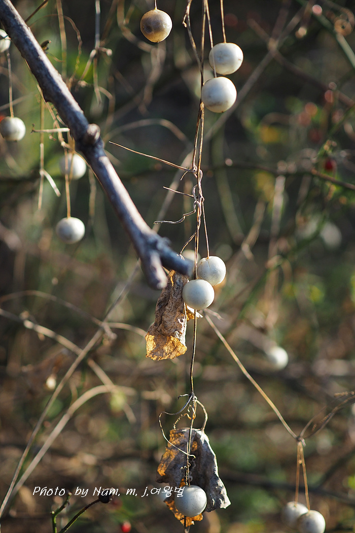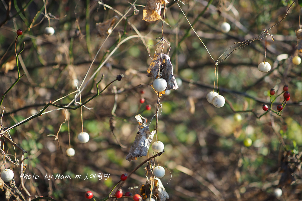 큰도로를 천천이 움직이는데 마른 덩굴에 알알이 달려 있는 하얀 열매를 보고 스치다가 급히 차를 세웠다.