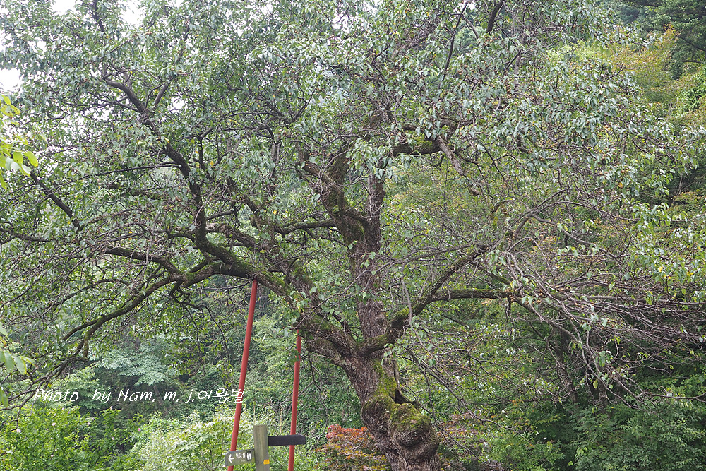 사찰 경내에 수령이 엄청난 산돌배나무가 서 있다.