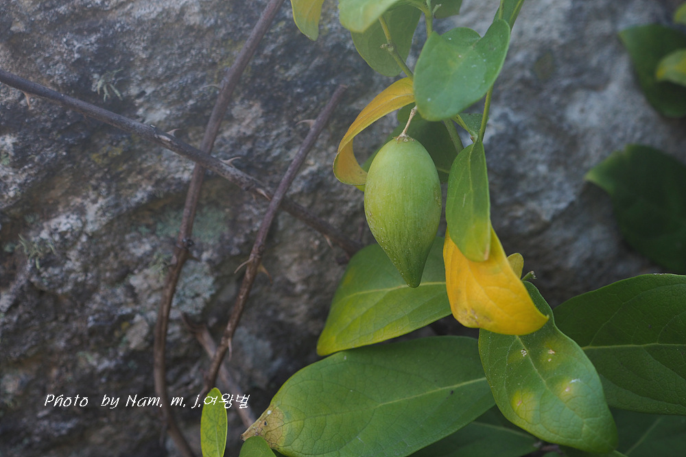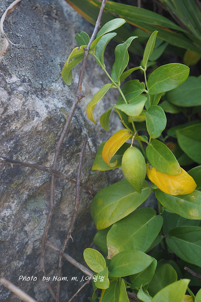 줄기 위쪽이 길게 자라서 덩굴로 되는 경우가 있다. 열매는 , 길이 4~6cm 타원상으로 둥그스름하다.