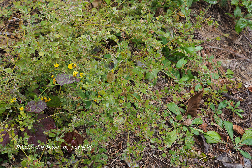 줄기는 길이 60~80cm, 철사처럼 가늘고 땅 위에 누워 자라며 전체에 긴 털이 있다.