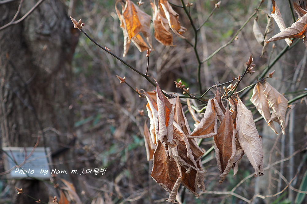 이 녀석은 잎을 떨구지 못한 채 겨울을 맞았다.