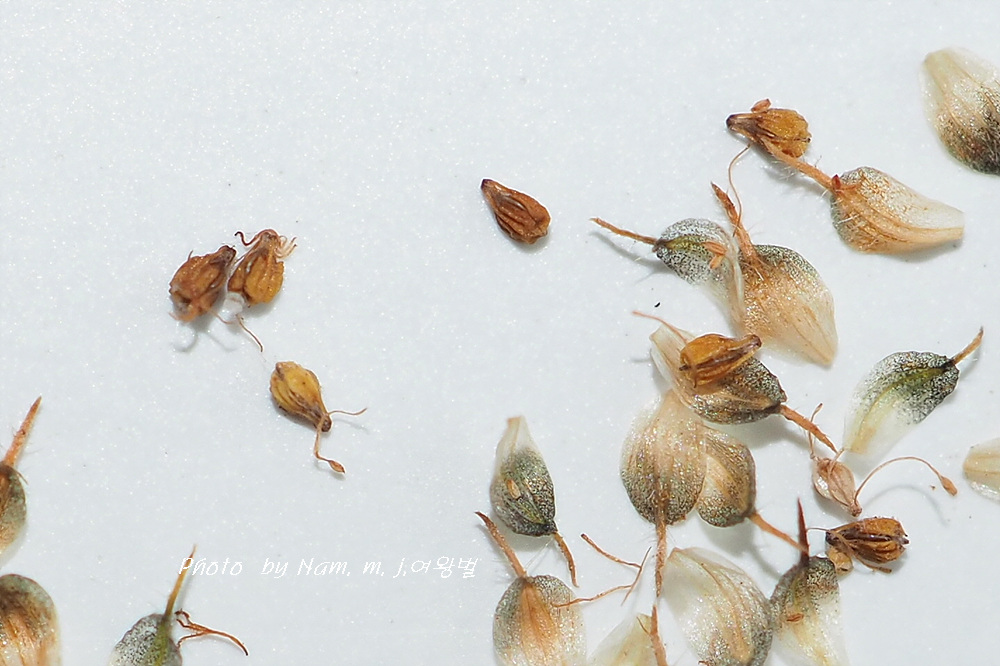 꽃 하나가 들어 있는 인편은 난형이고, 길이 1.6~1.8mm이고 끝에 까락과 털이 있다