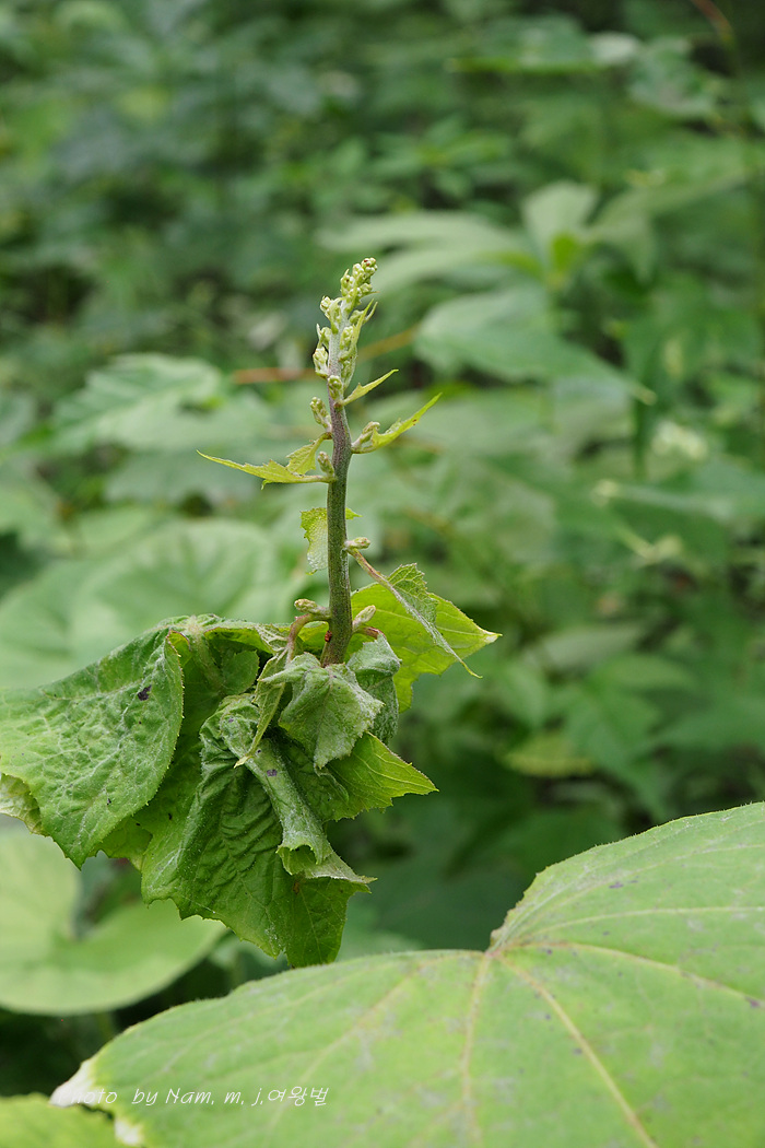 크게 3갈래로 갈라진 난형의 열편에는 결각성 톱니가 불규칙하게 있고 잎자루에 날개가 있는 왕씀배와 달리