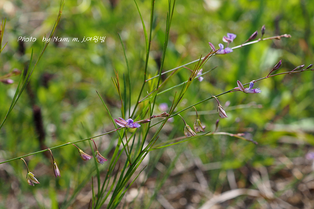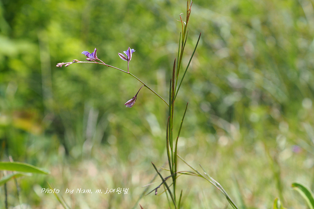 잎은 선형으로 끝이 뾰족하고 가장자리는 밋밋하며 잎자루는 없다.