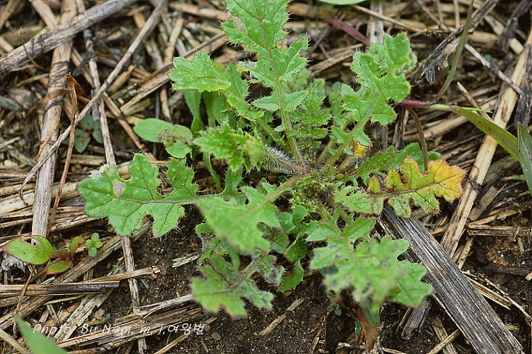 | 국내 미기록 외래식물인 Coincya tournefortii가 2018년 군산에서 처음 발견되었다. 본 종은 기부엽이 뚜렷한 로제트형을 이루고 열편은 깊게 갈라져 있어 유럽장대(Sisymbrium officinale (L.) Scop.) 또는 갯무(Raphanus sativus var. hortensis f. raphanistroides Makino)와 유사하게 보이며, 엽연과 엽병에 강모가 뚜렷하게 발달해 있어 엉겅퀴의 근생엽을 연상시킨다. 그러나 본종은 줄기의 기부에 강모가 밀생하고, 노란색의 꽃이 성기게 달리며, 결실기에도 남아있는 근생엽과 수분이 공급되면 점성을 띄는 종자를 갖는 특징으로 구분된다. 한편 본 종은 지중해 주변 국가, 중앙아시아, 인도 서부가 원산으로 건조 및 반건조한 지역에서도 잘 자라는 식물로 알려져 유럽과 미국, 오스트레일리아에 도입되어 널리 분포하고 있으며, 중국과 일본에도 분포한다. 일부 국가에서는 사막생태계 교란을 야기시키는 침입외래식물로 지정하여 환경 및 경제적 피해를 막기 위한 대책들이 강구되고 있다. 최초 발견된 군산 지역에서 3년 동안 관찰한 결과, 개체가 도태되지 않고 지속적으로 유지되고 있다. |