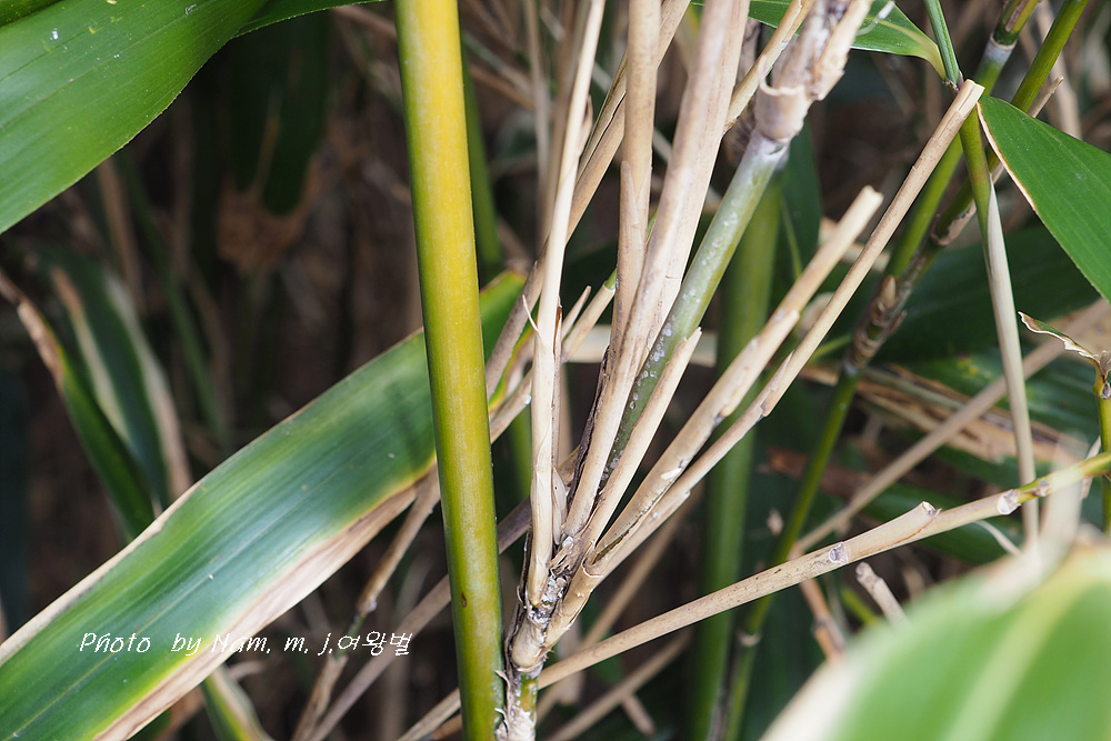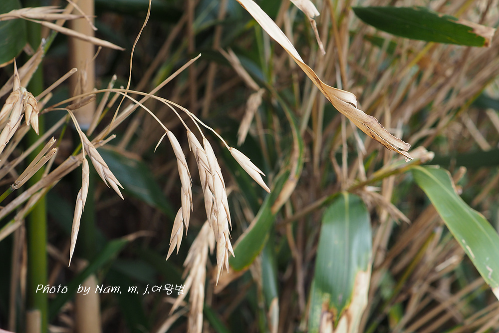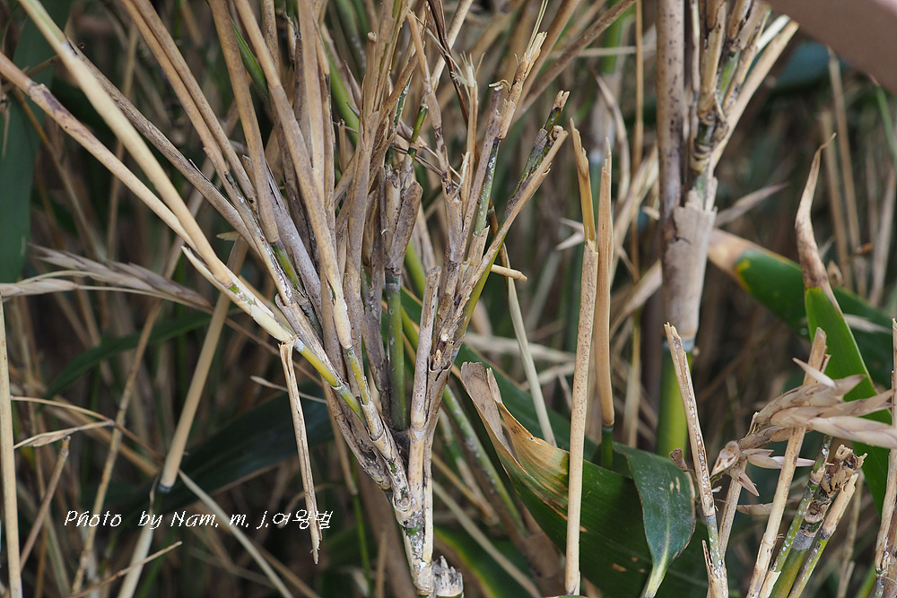 대나무는 꽃이 피면 대부분 죽는다던데 잎과 줄기가 멀쩡하다.