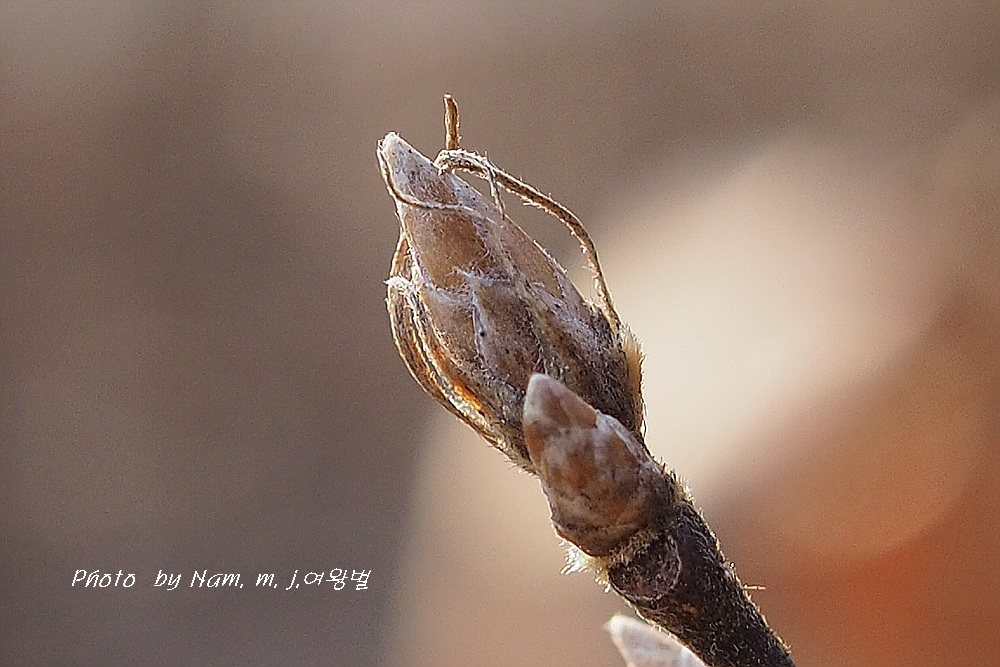 겨울눈 인편 가장자리에 백색털이 밀생한다.