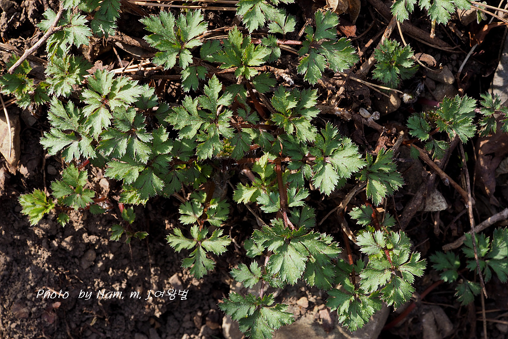 피나물의 변종으로 잎이 새발처럼 잘게 갈라진 점이 특징이다.