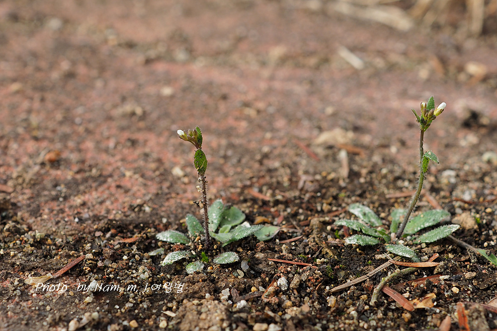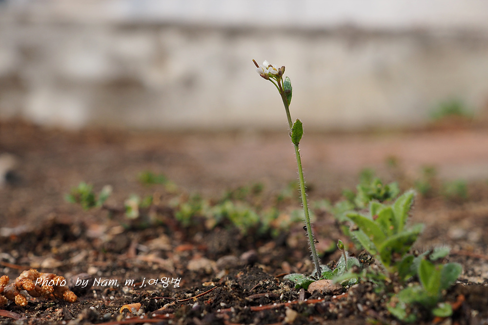 꽃다지처럼 톱니가 없는 밋밋한 로제트 잎을 펼치고 가느다랗게 줄기 하나 세운다.