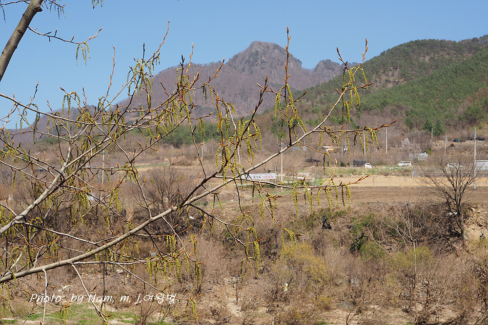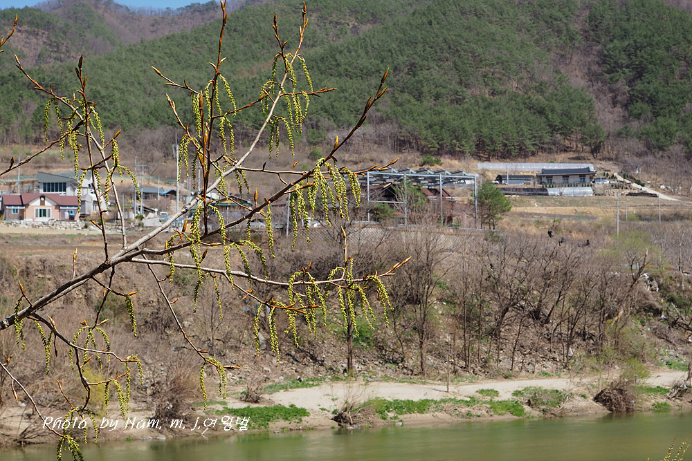 암꽃을 주렁주렁 달고 있는 이태리포풀라가 길 아래 강변에 서 있어서 꽃을 담기에 아주 안성맞춤이다.