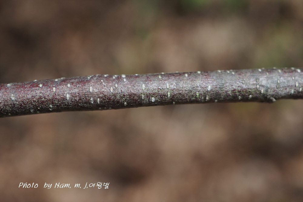 어린 가지는 짙은 회녹색, 적갈색으로 세로로 길게 자잘한 피목이 있다