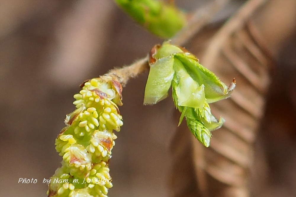 암꽃차례는 포만 보이고 수꽃차례는 꽃밥이 터지기 전이다