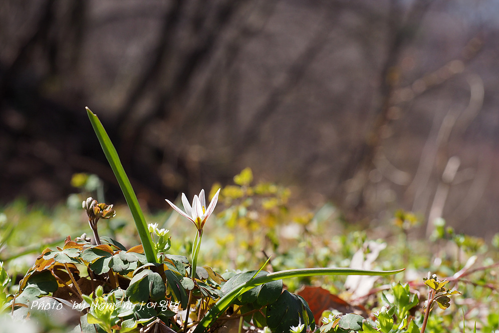 산길 볕 좋은 곳에서 자색이 짙은 산자고를 오랜만에 만나본다.