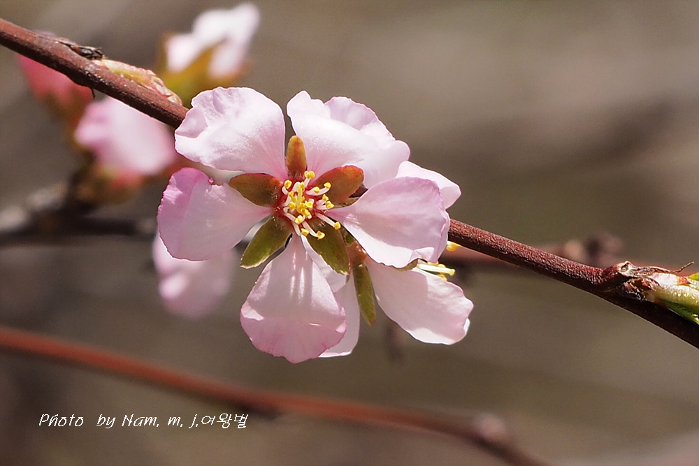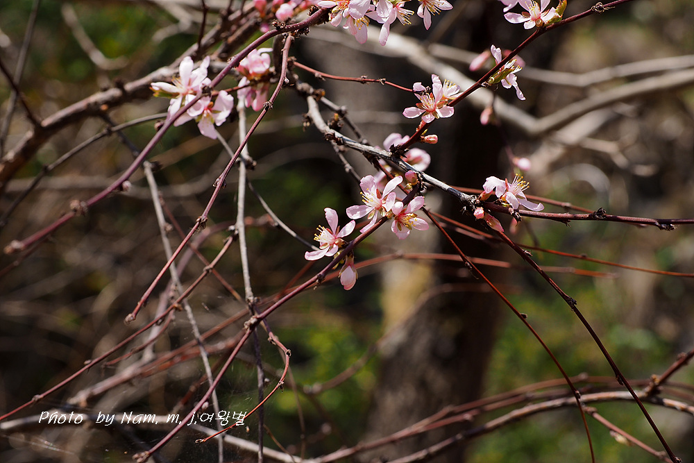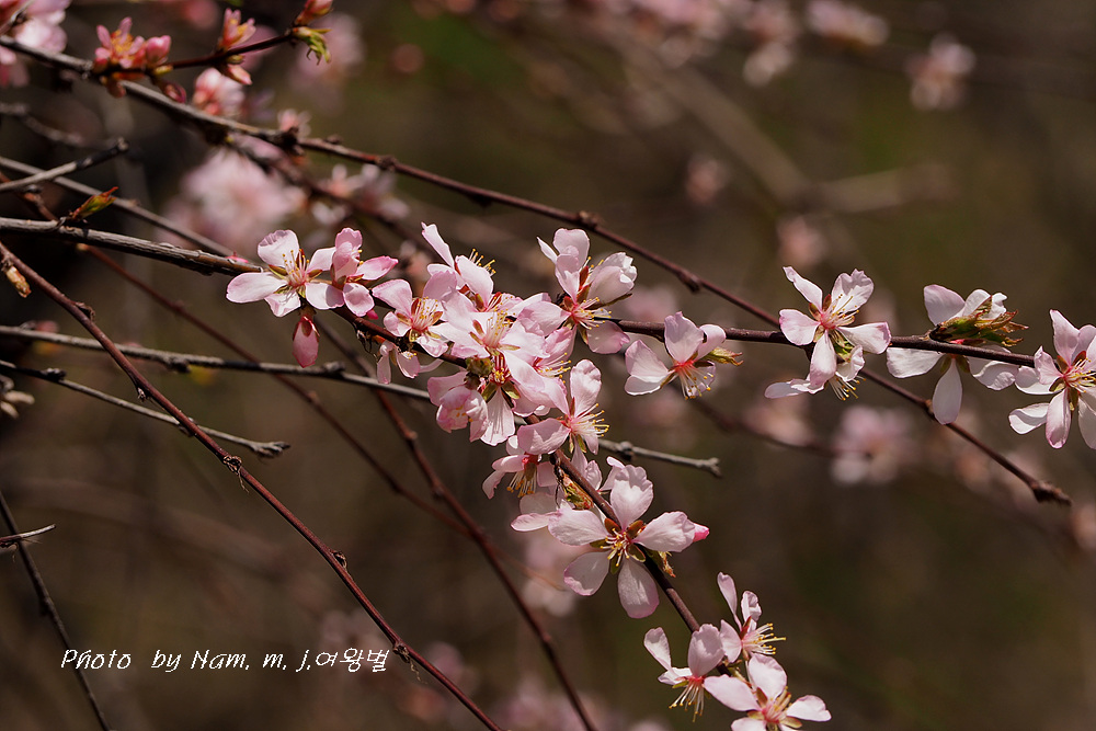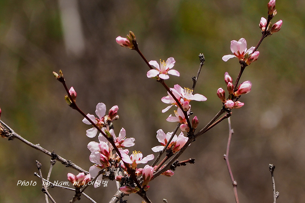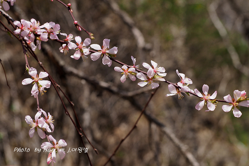 이 녀석은 복숭아나무나 벚나무와 비슷하지만 꽃잎이 1cm, 너비 5mm로 좁으며,