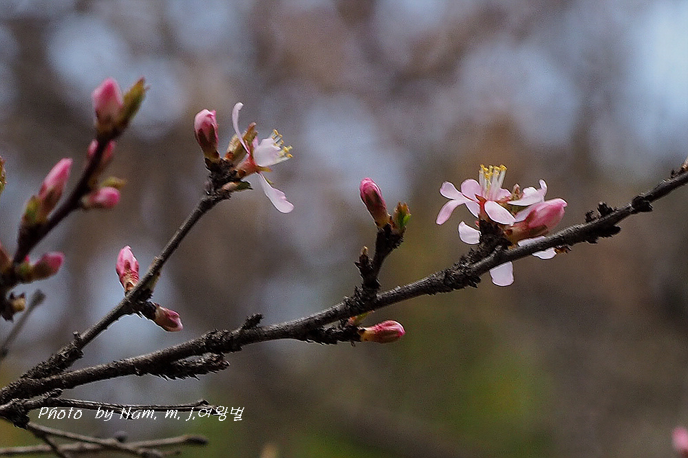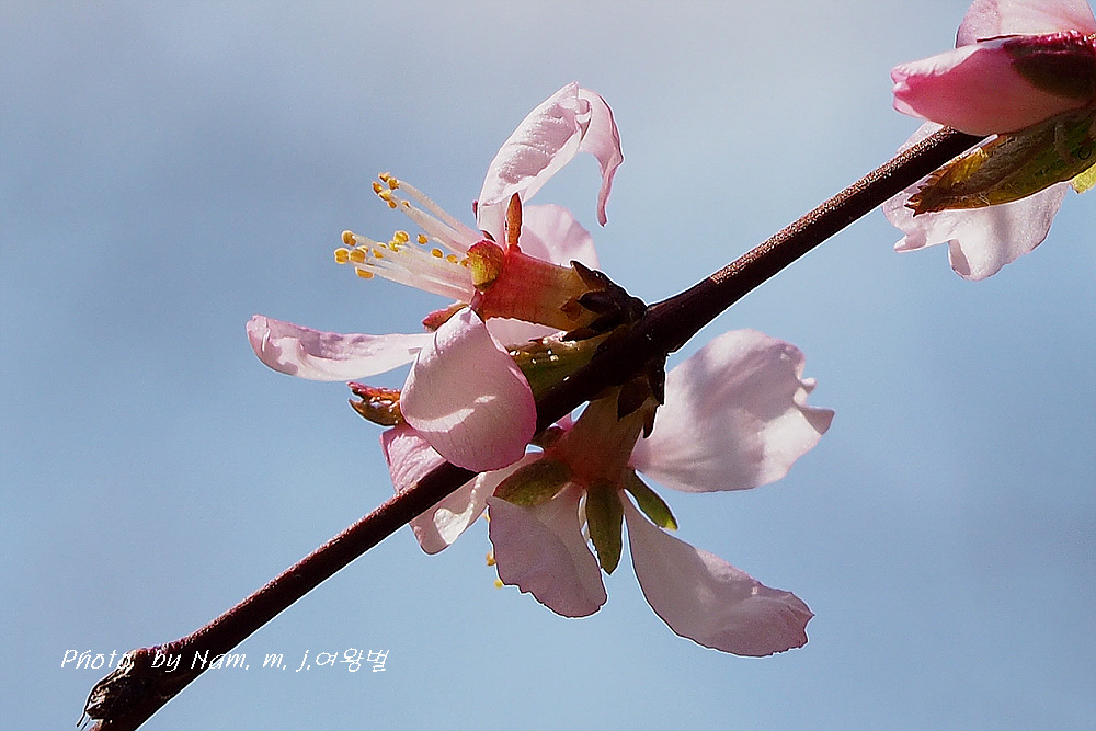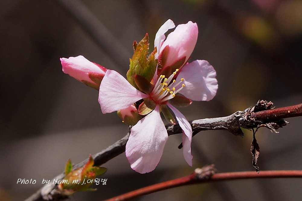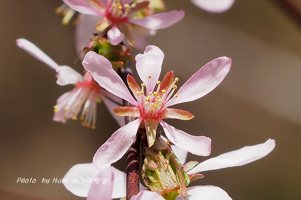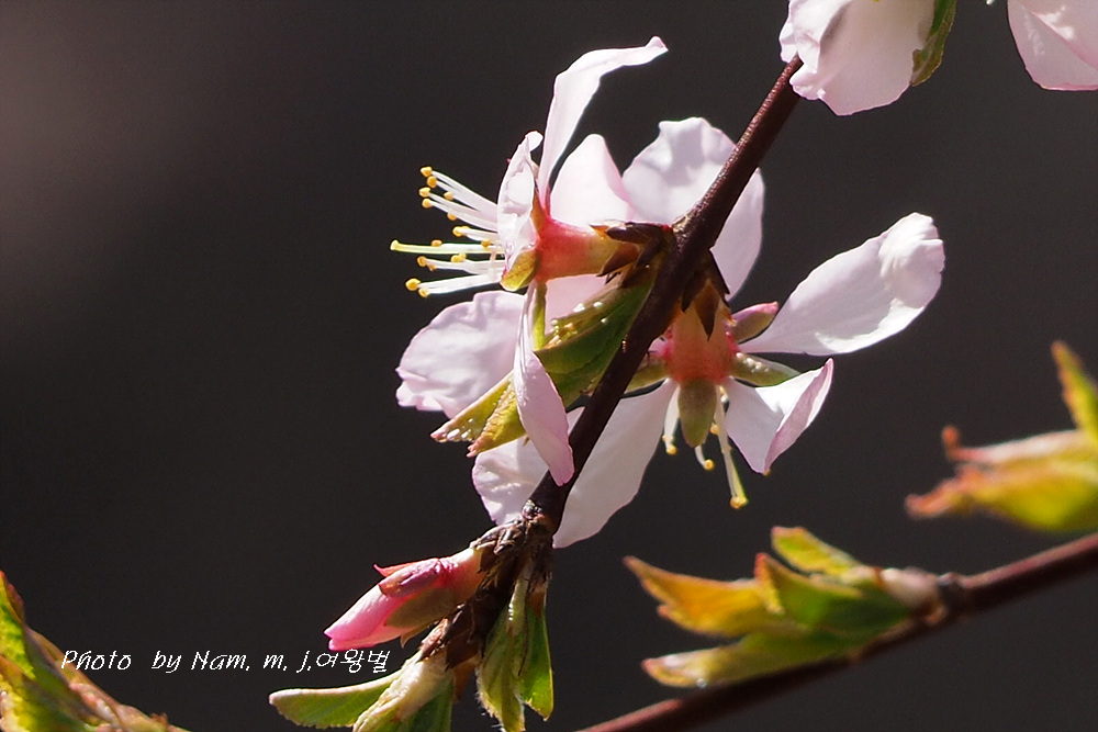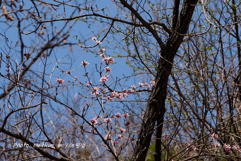 이 녀석은 복숭아나무나 벚나무와 비슷하지만 꽃잎이 1cm, 너비 5mm로 좁으며,