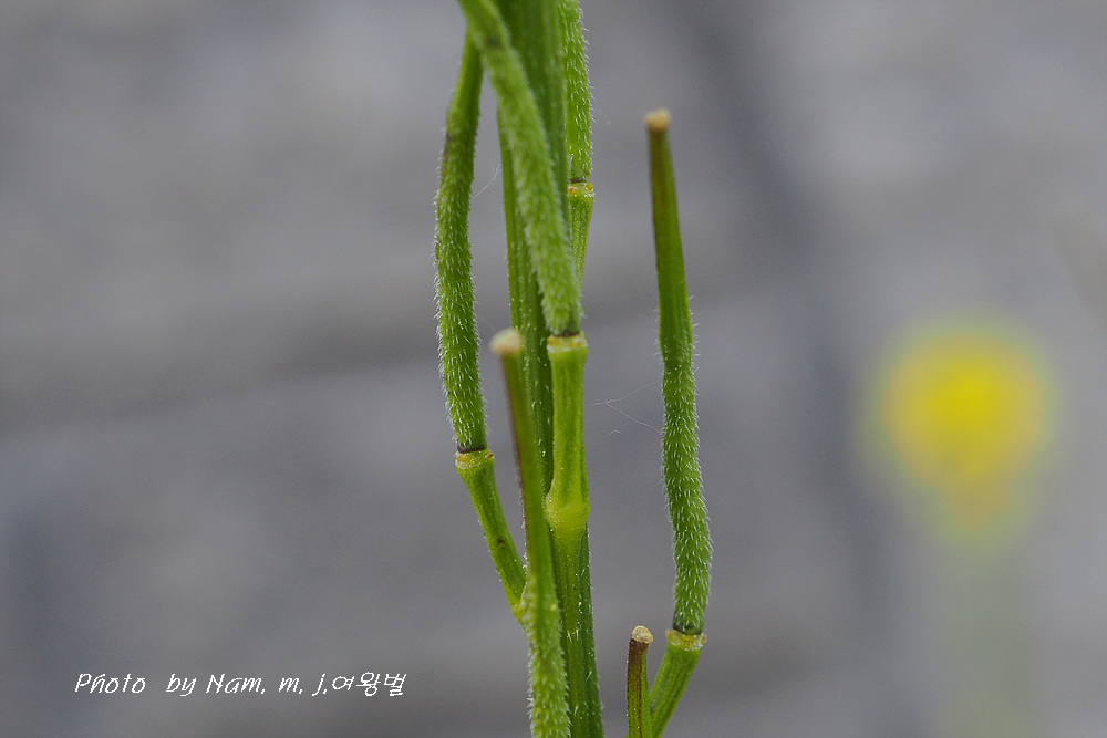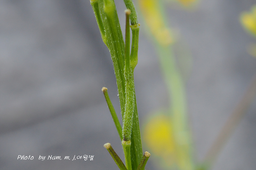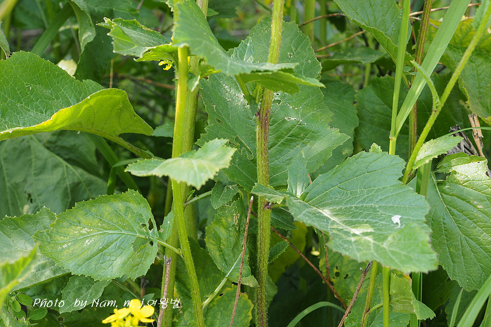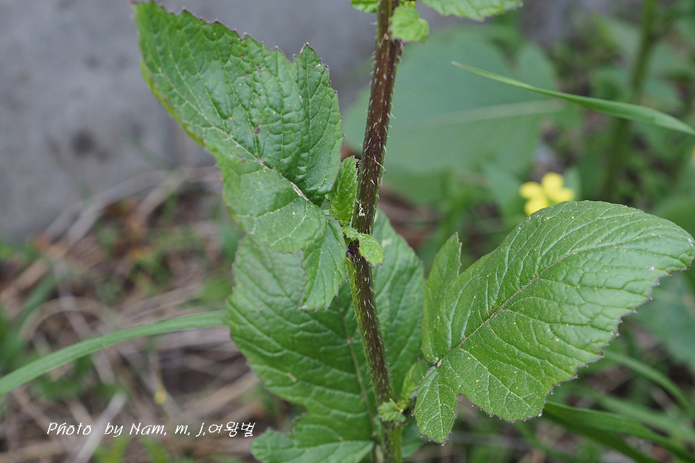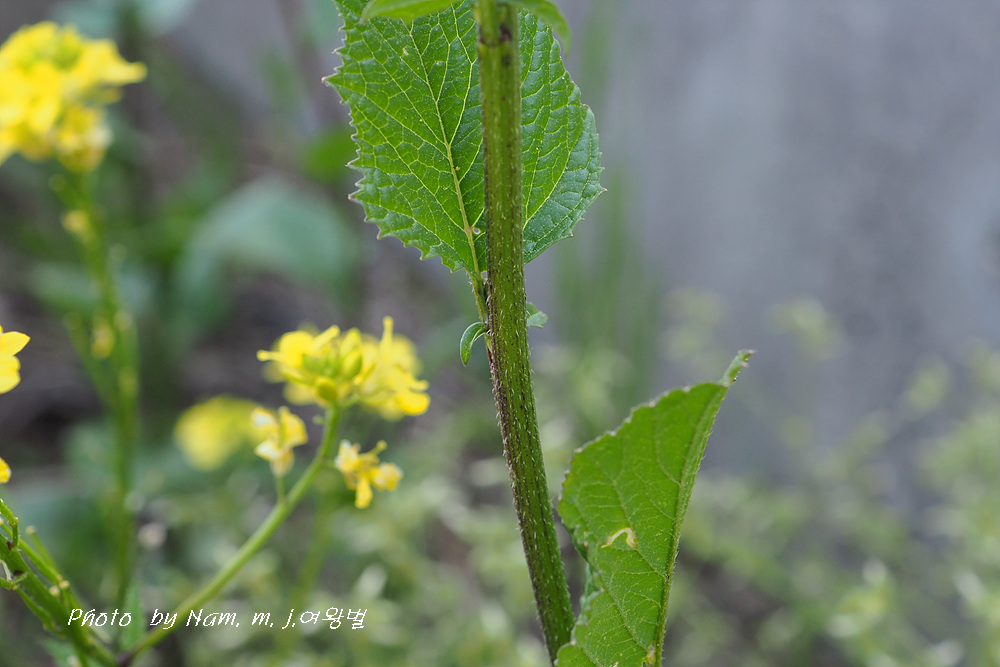 들갓은 줄기에 거센털이 나 있고 잎도 갓에 비하여 좀 짜박거리며 주름이 많은 느낌을 준다