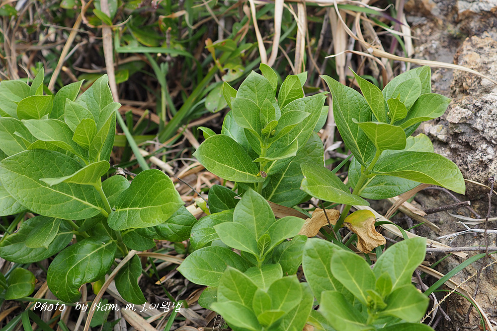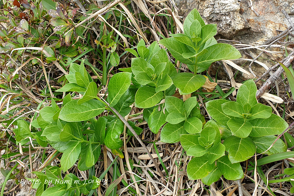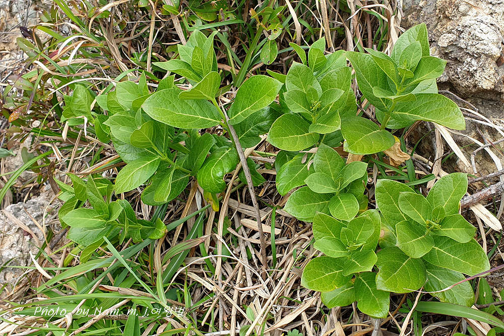 바닷가 바위 지대에 자라는 여러해살이풀이다.