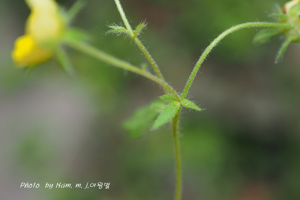 삼출엽의 잎을 가진 녀석은 기는 줄기를 벋어 나가는데 전초에 긴털이 밀생하고 있다.