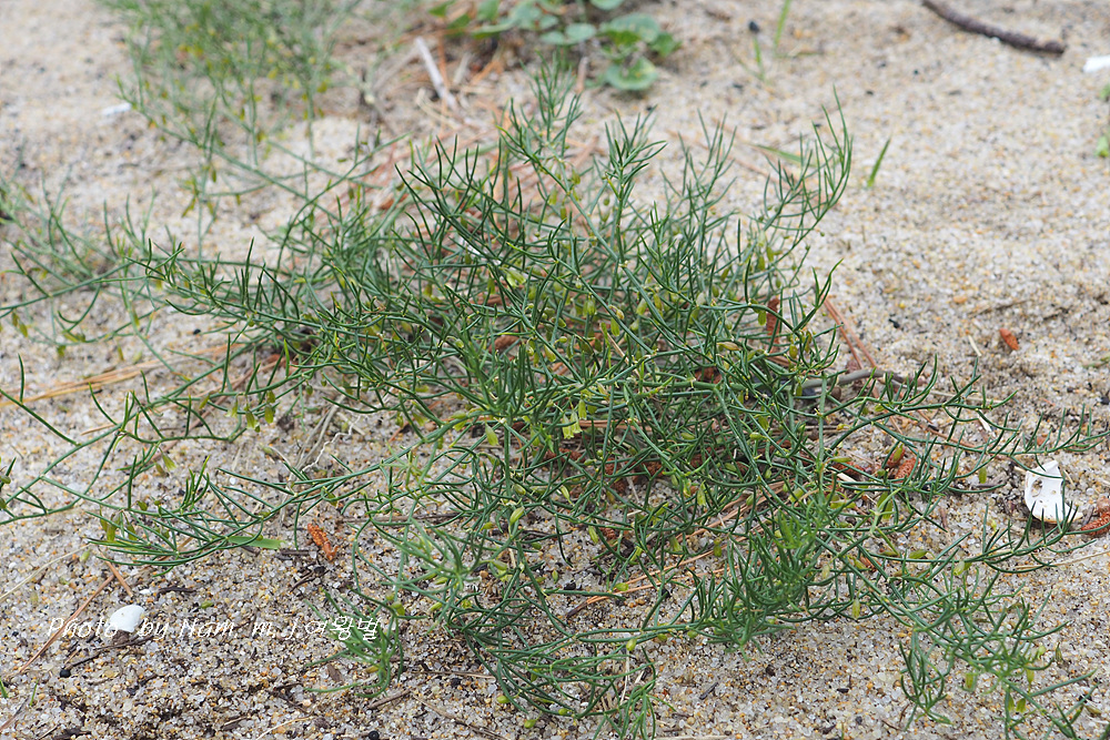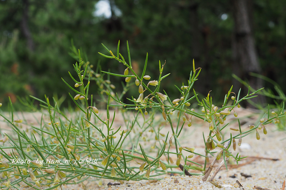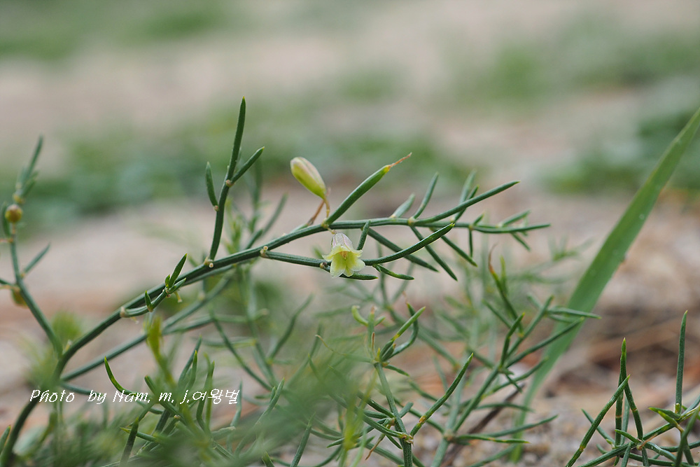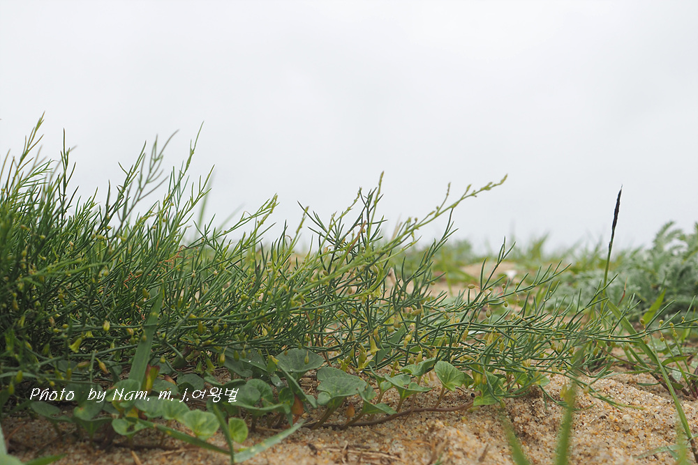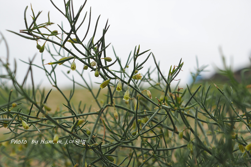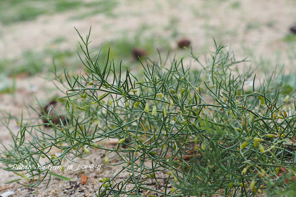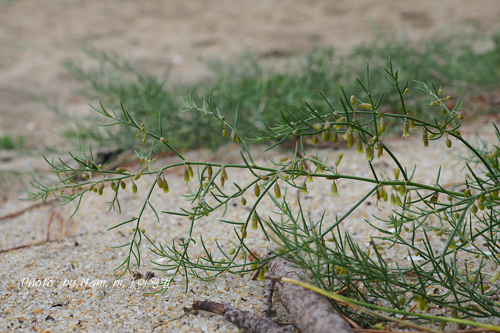 이 녀석은 배닷가에 모래밭에 비스듬하게 누워 자라는 비짜루속 녀석으로 한국 특산식물이다 .