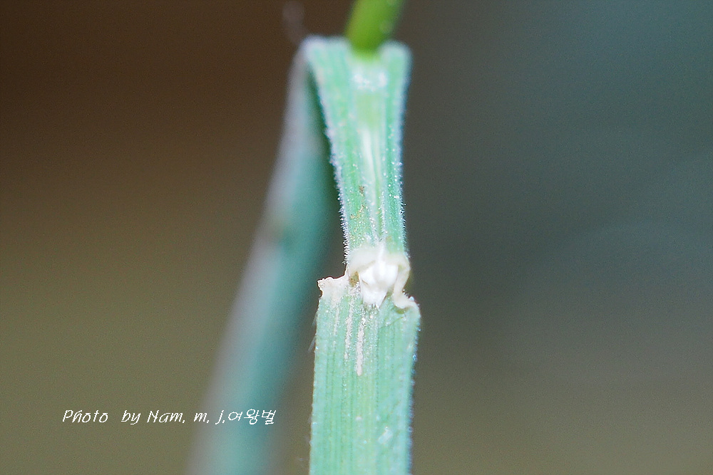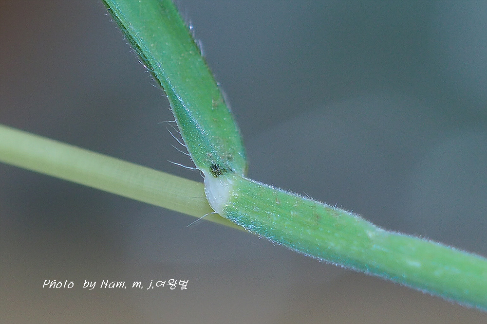 화축과 가지에 백색 잔털이 많고 잎, 엽초에도 잔털이 있다.