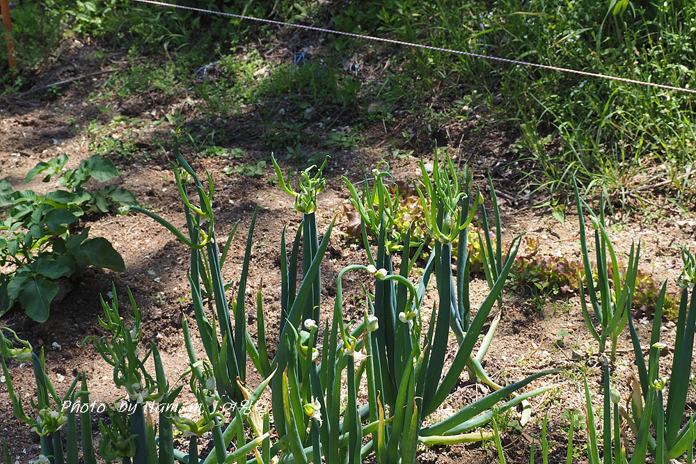 파 꽃이 안 피고 무성아를 달고 있는 이상한 품종을 만났다.