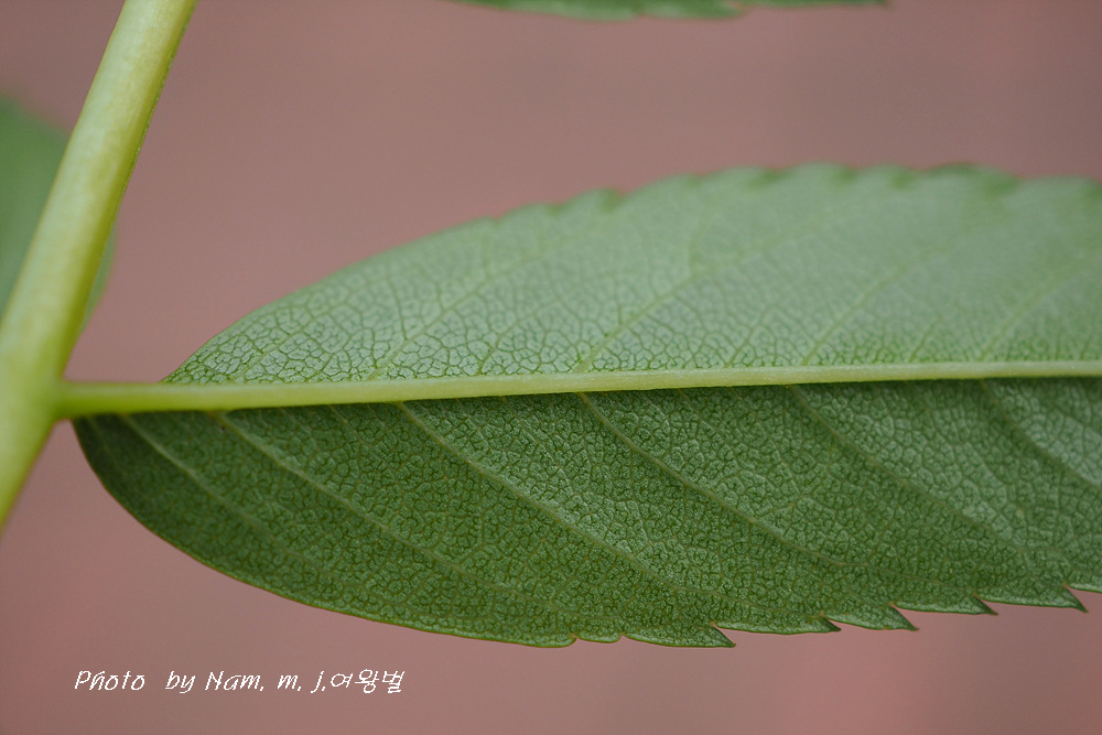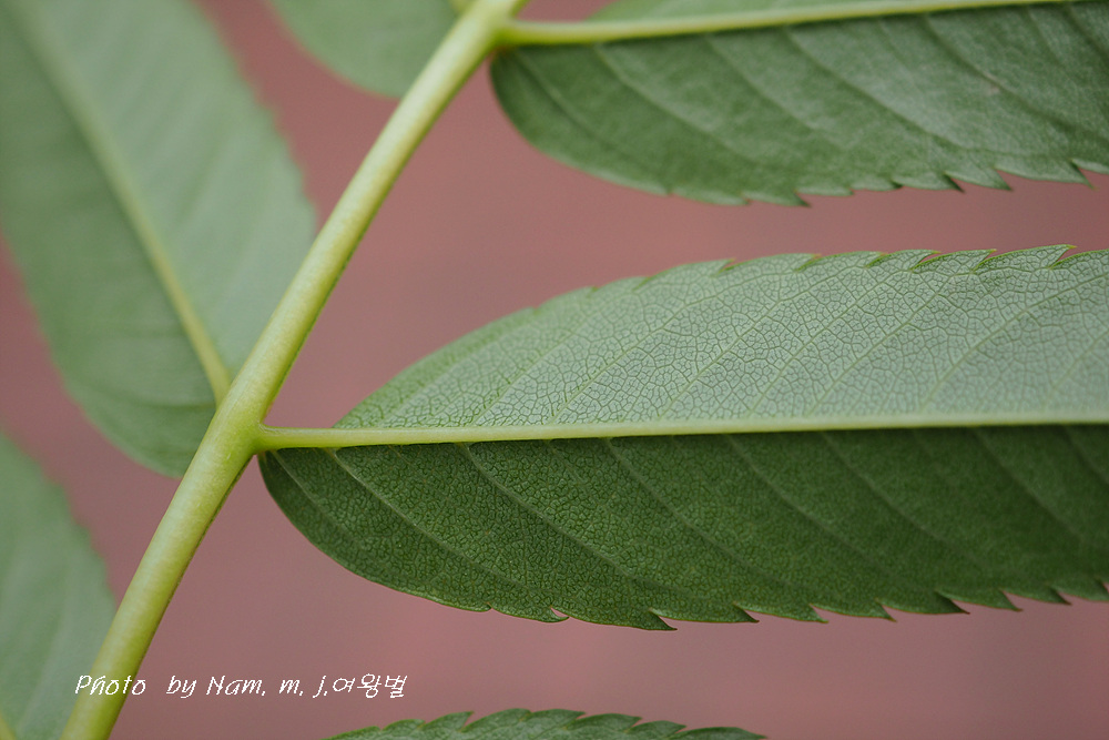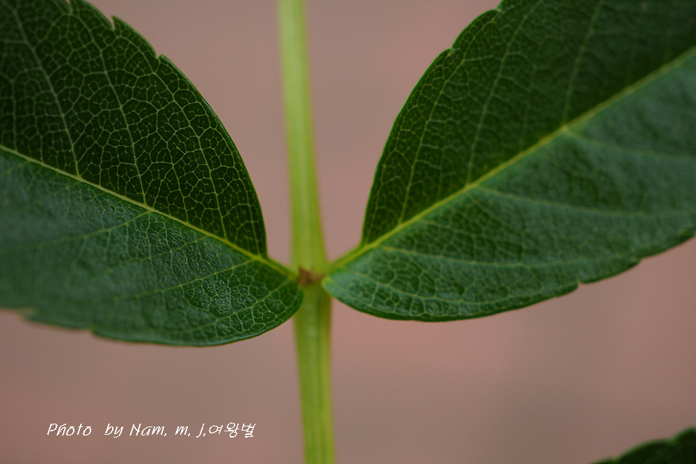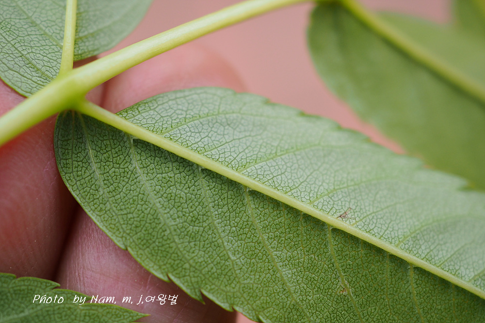 잎은 홀수깃꼴겹잎으로 작은 잎은 13-15장이다.